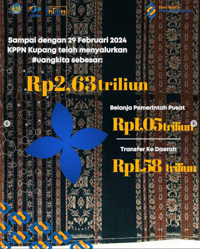 Kinerja realisasi APBN s.d 29 Februari 2024 dalam wilayah kerja KPPN Kupang masih di dominasi oleh Belanja Pegawai yaitu sebesar Rp436 miliar rupiah atau 19,17% sedangkan untuk komponen Belanja Transfer Ke Daerah tertinggi masih Dana Alokasi Umum yaitu sebesar Rp1,14 triliun rupiah