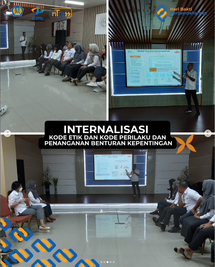 Pada kesempatan yang sama, Kepala Seksi MSKI sebagai Unit Kepatuhan Internal KPPN Kupang juga menyampaikan materi penguatan integritas pegawai terkait penangangan benturan kepentingan dan kode etik dan kode perilaku. Untuk menambah pemahaman dan komitmen anti korupsi, dilaksanakan kegiatan nonton bersama video integritas/anti korupsi.