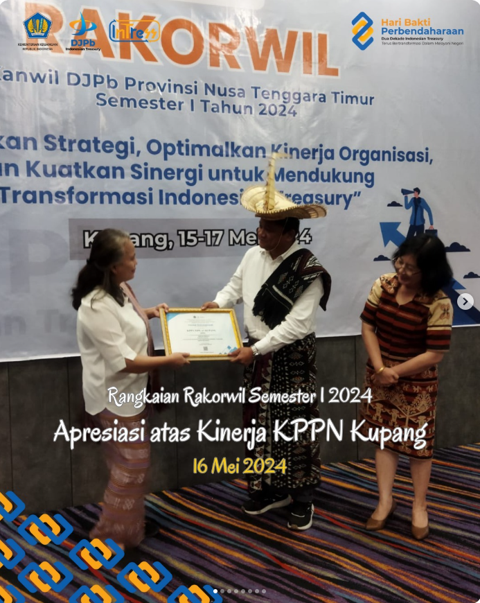 Pada sesi malam apresiasi, KPPN Kupang mendapat piagam penghargaan dari Kepala Kanwil DJPb Provinsi NTT atas kinerja meliputi:
