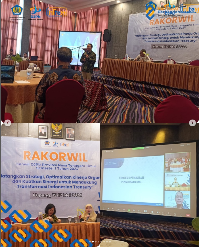 Pada Kamis, 16 Mei 2024 (hari kedua Rakorwil) telah dilaksanakan kegiatan berupa arahan dan tanggapan dari para Kepala Bidang, pemaparan dan diskusi terkait beberapa materi antara lain "Implementasi Program TREFA pada Kanver DJPb" oleh perwakilan Dit. PA, "Strategi Pengembangan Kapasitas Pengelolaan Keuangan Negara dan Penguatan FKPKN" oleh perwakilan Dit. SP, dan ditutup oleh materi "Strategi Optimalisasi Transaksi Non Tunai : CMS dan DIGIPAY" oleh perwakilan Dit. PKN.