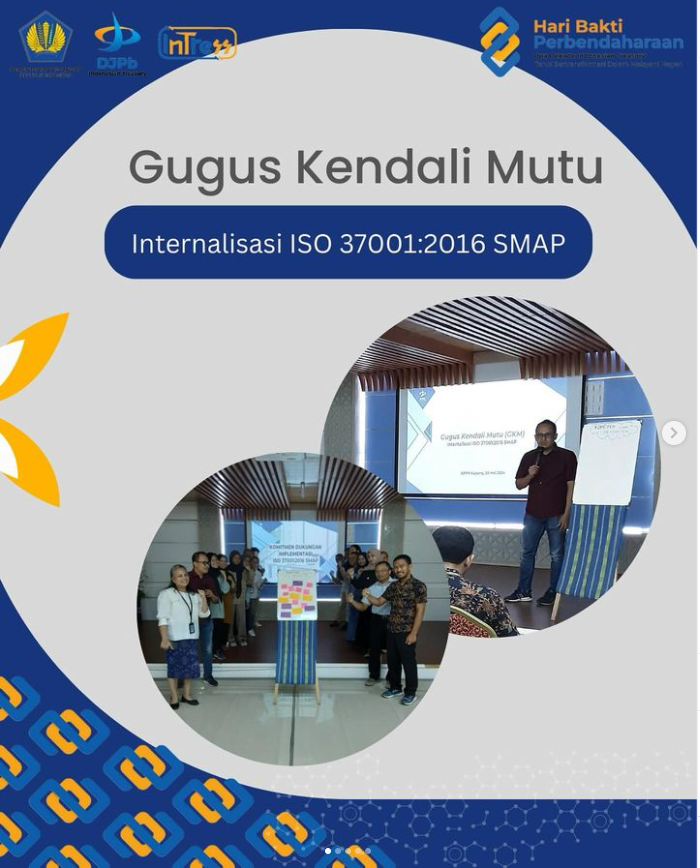 Kamis, 30 Mei 2024 berlangsung kegiatan Gugus Kendali Mutu (GKM) dengan tema Internalisasi ISO 37001:2016 SMAP. Kegiatan ini dilaksanakan untuk meningkatkan pemahaman dan kapasitas pegawai dalam pelaksanaan tugas dan mendukung implementasi ISO 37001:2016 di KPPN Kupang.