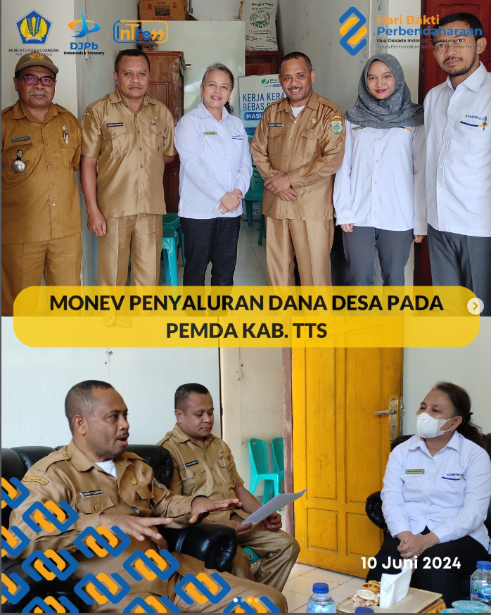 Dalam rangka mengawal penyaluran Dana Desa Tahap I, KPPN Kupang melakukan diskusi dan monev ke Pemda Kab. TTS pada hari Senin, 10 Juni 2024.