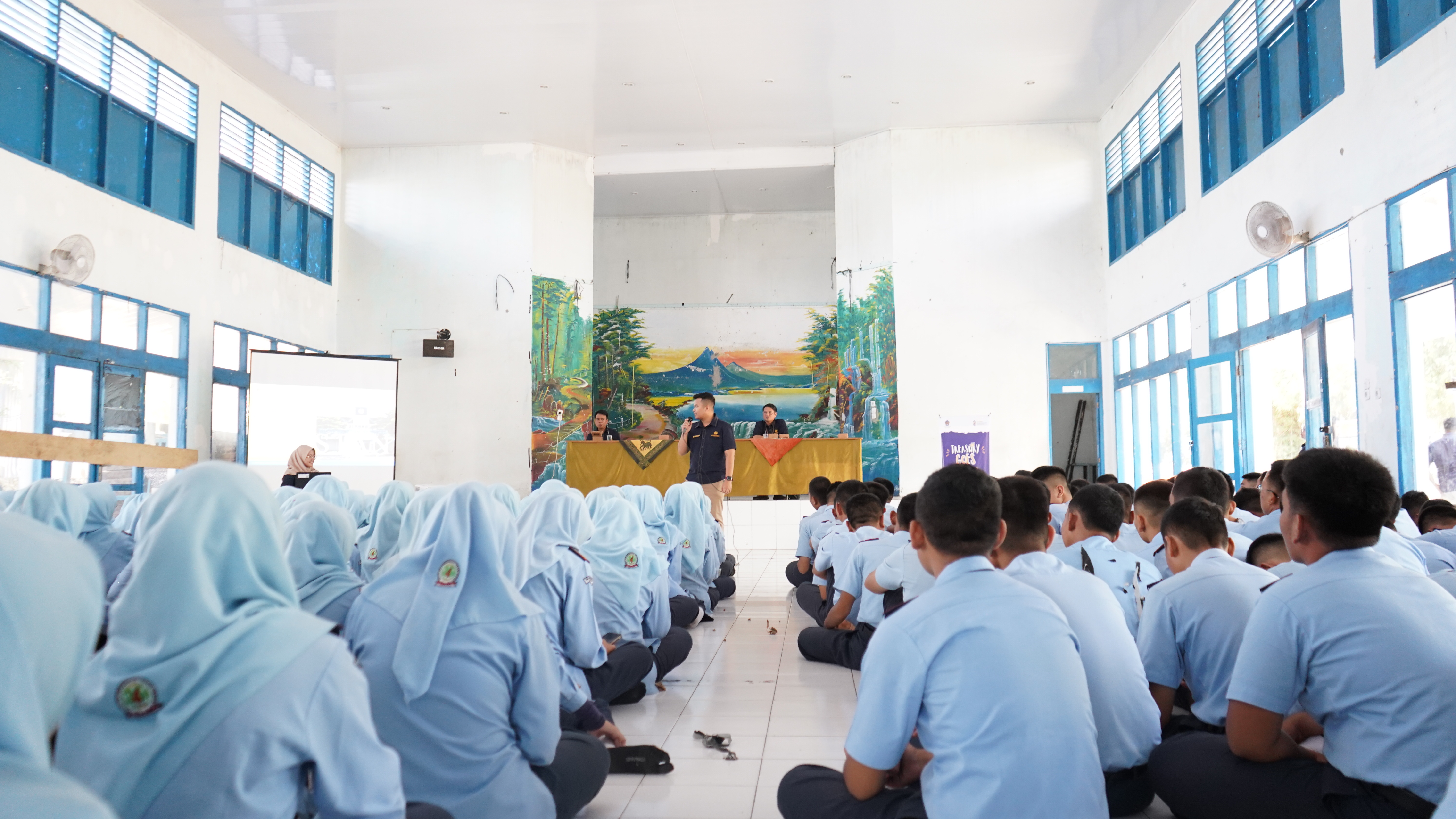 Acara Treasury Goes To School dibuka oleh Perwakilan Kepala SMA Negeri 4 Lahat, Ibu Rolly Afrianti. Beliau menyampaikan kepada seluruh siswa siswi untuk dapat mengikuti acara dengan baik dan menyerap seluruh informasi yang akan disampaikan oleh pemateri. Selanjutnya dilanjutkan dengan sambutan Kepala KPPN Lahat, Bapak Budi Hartadi. Setelah itu, acara dilanjutkan dengan sesi penyampaian materi APBN, penyuluhan antikorupsi, dan PKN STAN.