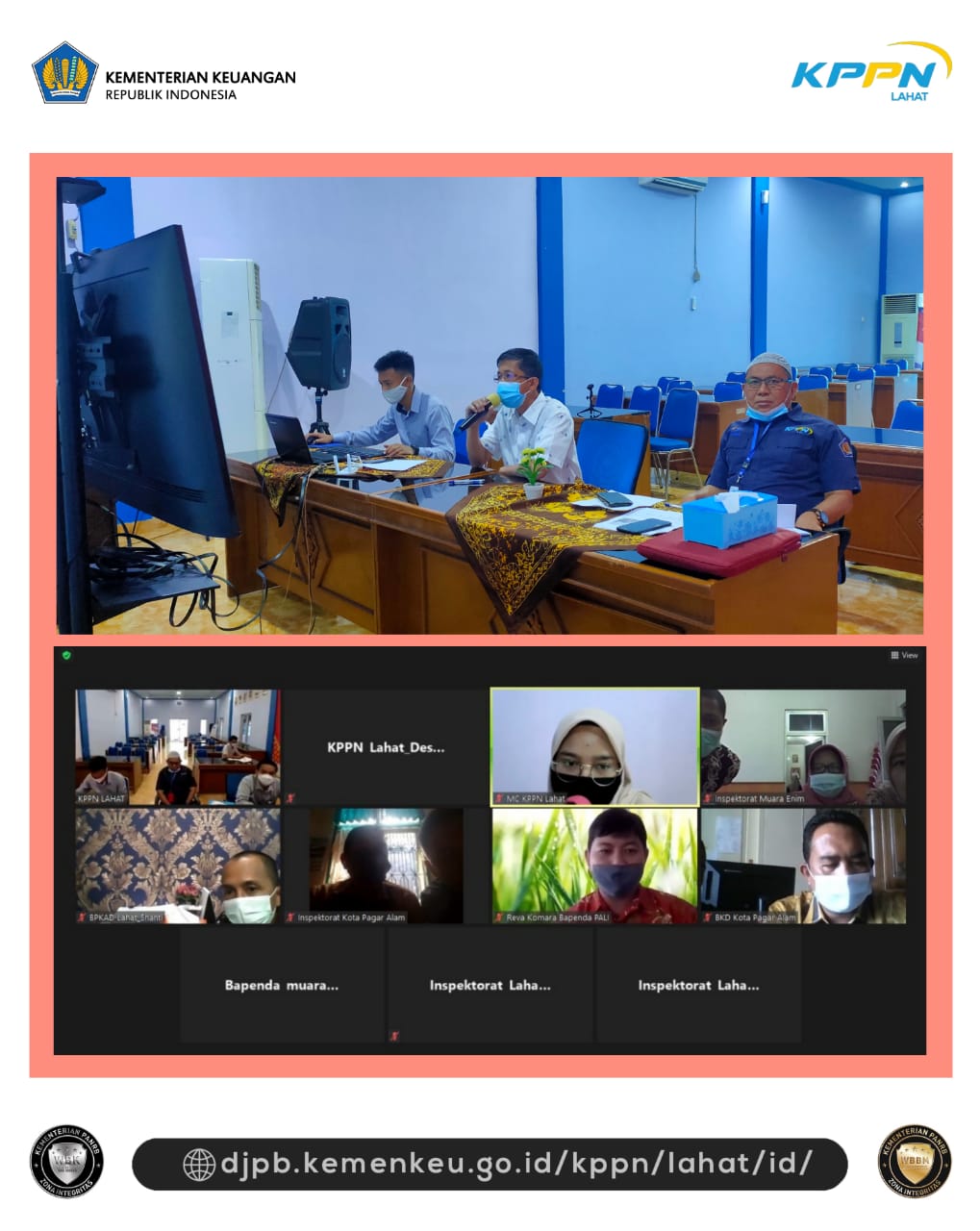 Lahat-02/03/2021 bertempat di aula KPPN Lahat telah dilaksanakan acara sosialisasi Per-2/PB/2021 tentang petunjuk teknis revisi anggaran yang menjadi kewenangan DJPb TA 2021, sekaligus bimbingan teknis sistem aplikasi digital payment-marketplace. Mengingat masih adanya pandemi Covid-19, dilakukan pembatasan jumlah peserta yang hadir secara tatap muka yaitu hanya satker dari Kabupaten Lahat. Sementara untuk satker di luar wilayah Lahat mengikuti sosialisasi dan bimtek ini secara daring melalui aplikasi zoom.