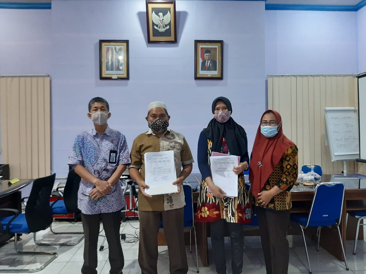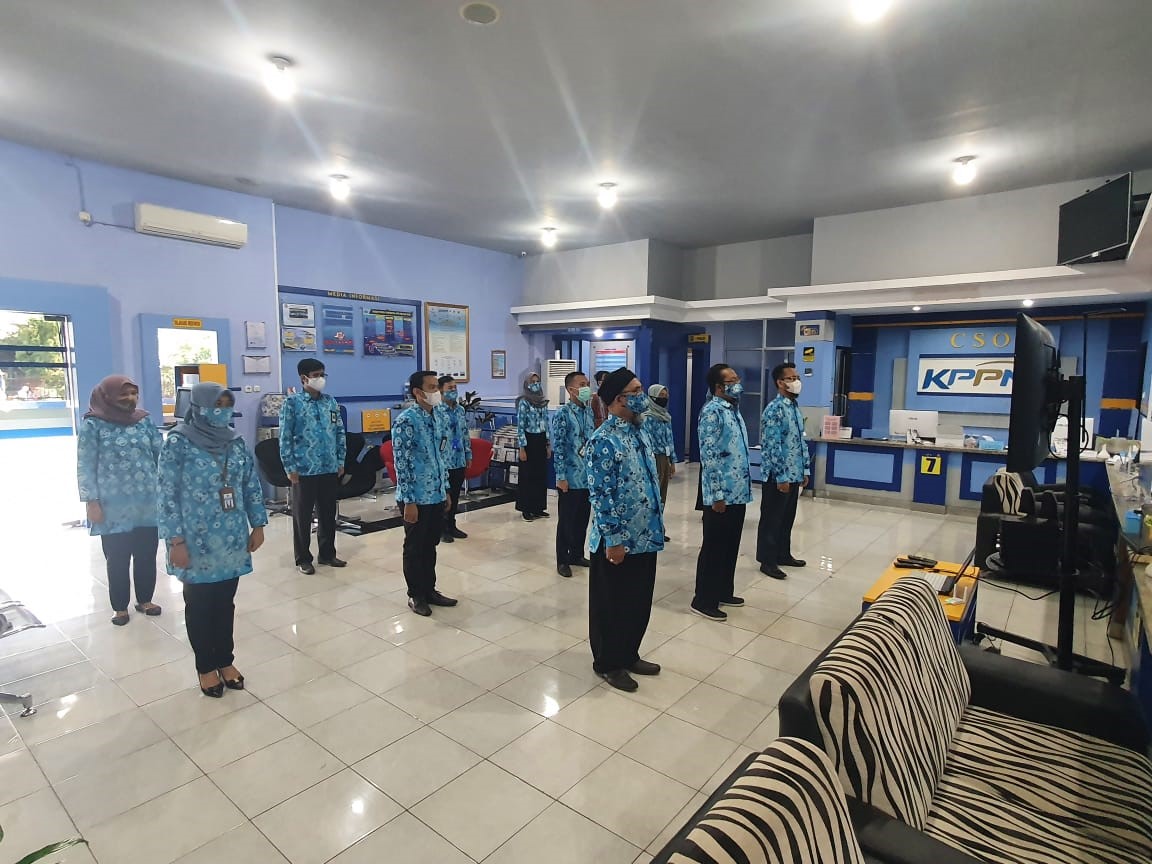 Lahat, 14/12/2020- Bertempat di Aula Kantor Pelayanan Perbendaharaan Negara (KPPN) Lahat, proses penyerahan Daftar Isian Pelaksanaan Anggaran (DIPA) Petikan Tahun Anggaran 2021 wilayah pembayaran KPPN Lahat diselenggarakan pada hari Senin, 14 Desember 2020. Penyerahan DIPA 2021 tetap dilaksanakan secara tatap muka di tengah kondisi pandemi COVID-19 dengan tetap mematuhi protokol kesehatan, yaitu: mencuci tangan, menjaga jarak, dan memakai masker untuk seluruh tamu undangan yang hadir dari Kab. Lahat, Kab. Muara Enim, Kab. PALI, Kota Pagaralam, dan Kab. Empat Lawang.
