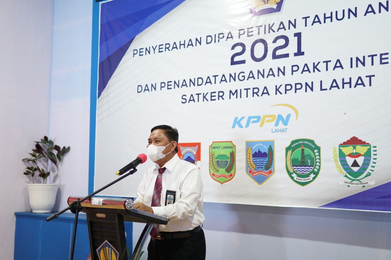 Seiring dengan prosesi penyerahan DIPA, kepala KPPN Lahat meresonansi kembali arahan presiden agar sedapat mungkin memproses pengadaan barang/jasa sejak dini, dan tidak menunggu dimulainya Tahun Anggaran 2021. Bantuan sosial agar disalurkan pada kesempatan pertama di bulan Januari 2021 dan semua pihak diharapkan mendukung upaya percepatan Reformasi Anggaran yang dilakukan oleh para Menteri dan Pimpinan Lembaga. Resource APBN dan APBD yang ada agar benar-benar dimanfaatkan secara cermat, efektif, dan tepat sasaran sehingga setiap Rupiah dapat dimanfaatkan sebesar-besarnya untuk kepentingan/kemakmuran Rakyat.