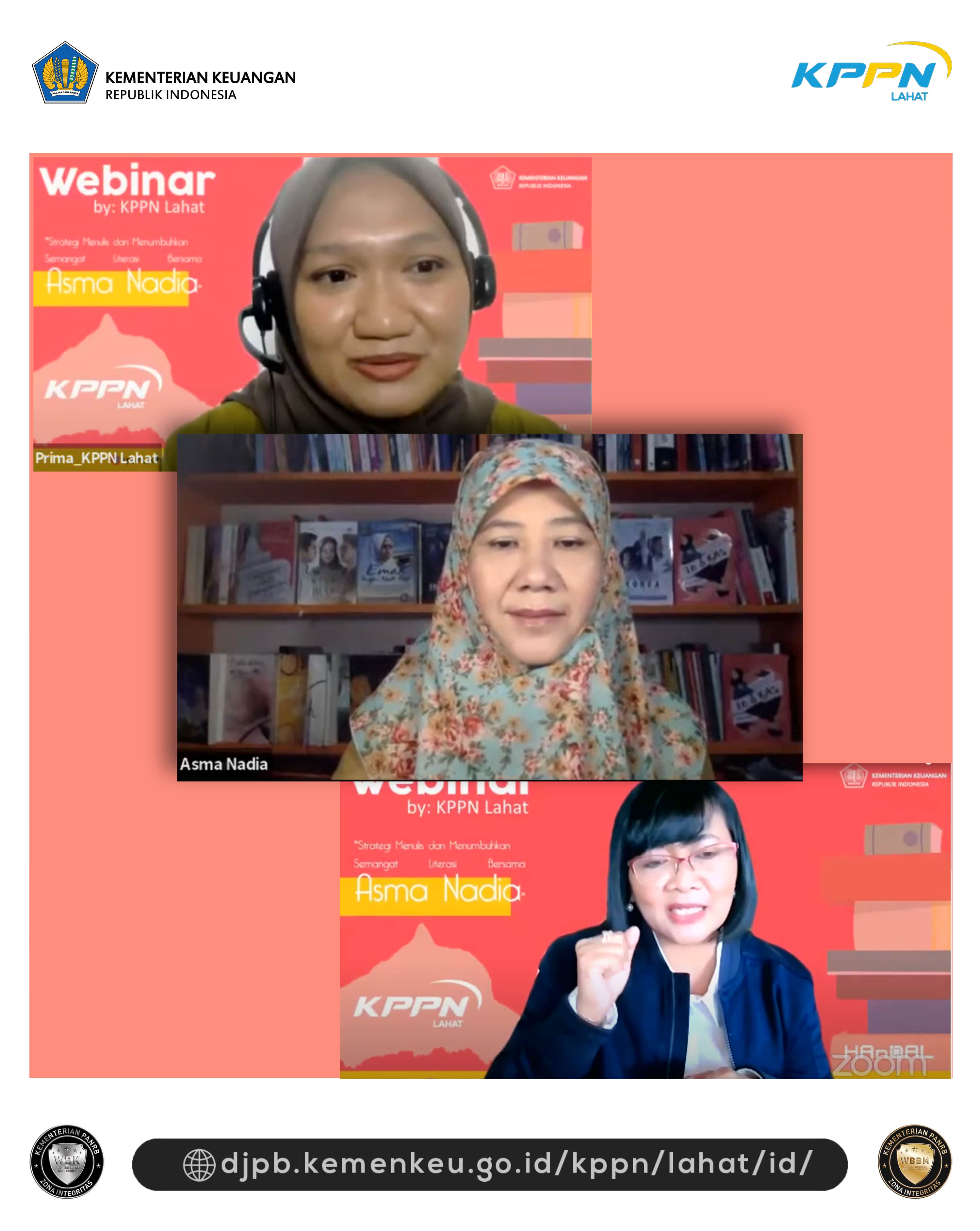 KPPN Lahat sebagai kepanjangan tangan dari Kementerian Keuangan, juga mendukung secara penuh program literasi tersebut dalam peningkatan sumber daya manusia dan kebermanfaatannya untuk stakeholder maupun masyarakat sekitarnya termasuk keterlibatan perserta dari kalangan akademisi, mahasiswa serta pelajar lingkup Kabupaten Lahat Khususnya. Oleh karena itu, sebagai bentuk dukungan yang dilakukan KPPN Lahat dalam hal berkekspresi di dunia literasi, diselenggarakan pelatihan/sharing session terkait langkah-langkah membuat literasi dan tulisan yang baik dan melibatkan pembicara yang kompeten, Asma nadia. (11/11)