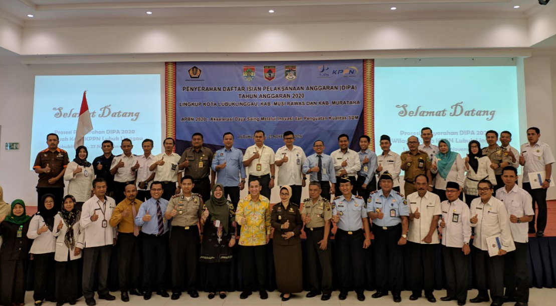 Dan pada 14 Nopember 2019 lalu, di Istana Negara - Jakarta telah dilakukan prosesi penyerahan DIPA Induk APBN Tahun 2020 dari Presiden kepada para Menteri/Pimpinan Lembaga selaku Pengguna Anggaran dan Buku Transfer ke Daerah dan Dana Desa (TKDD) kepada para Gubernur selaku Wakil Pemerintah Pusat untuk wilayah provinsi masing-masing. Menindaklanjuti prosesi tersebut, sesuai amanat Presiden, bagian dari DIPA Induk Kementerian/Lembaga terinci kepada DIPA satker Kantor Daerah dan Tugas Pembantuan yang akan dilaksanakan para Kuasa Pengguna Anggaran (KPA) di wilayah Kota Lubuklinggau, Kabupaten Musi Rawas dan Musi Rawas Utara, yang mana penyerahan DIPA Petikan Tahun 2020 dilakukan Rabu (27/11).