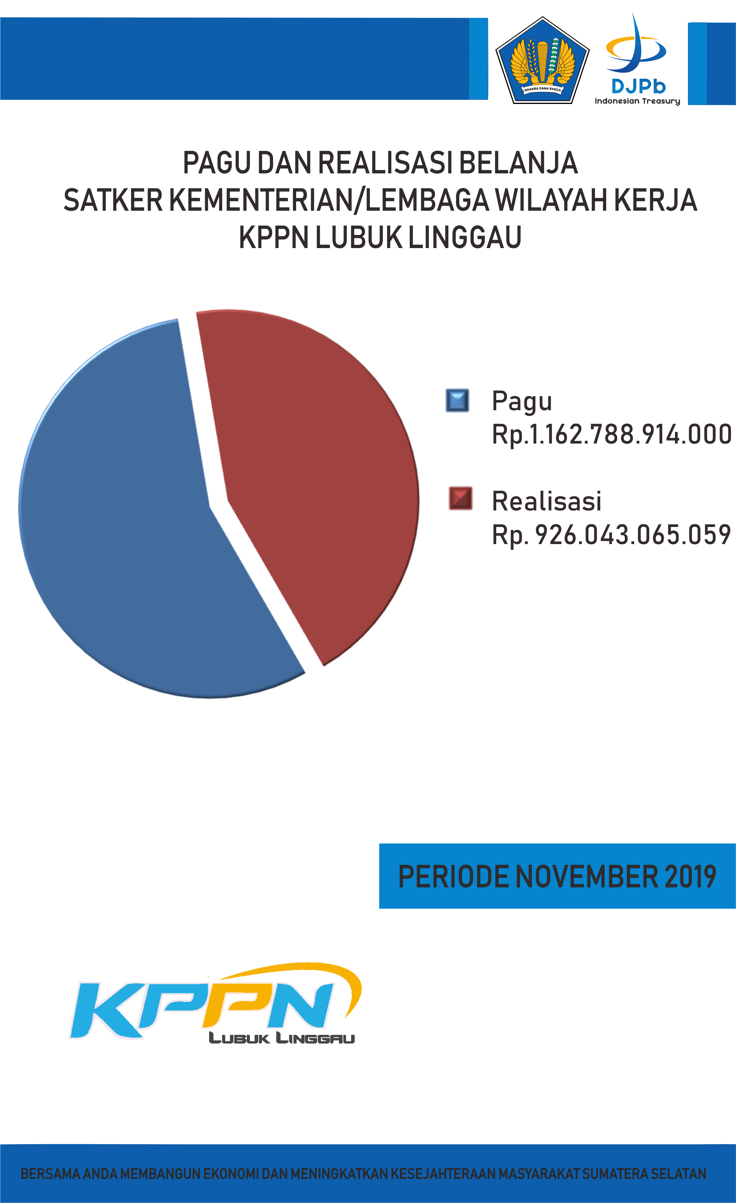 "Dan periode pelaksanaan Anggaran 2019 tinggal 1 bulan lagi, mari kita upayakan untuk meningkatkan penyerapan anggaran semaksimal mungkin agar mencapai tingkat penyerapan ideal yakni 100 persen. Mencapai pelaksanaan kegiatan yang efektif sesuai dengan kegiatan yang telah direncanakan dan tidak bersifat menghambur-hambur dana untuk mencapai realisasi yang terbaik. Dan yang terpenting dalam pembelanjaan uang negara dapat memberikan dampak pertumbuhan ekonomian dan kesehjateraan bagi masyarakat, khususnya di wilayah Kota Lubuklinggau, Kabupaten Mura dan Muratara,"harapnya.