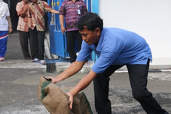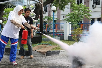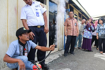 Setelah diberikan pengarahan oleh Petugas Pemadam Kebakaran Kabupaten Banggai, para pegawai melakukan pemadam api sesuai petunjuk yang sudah dijelaskan karena dengan praktek lebih mudah untuk memahami dan melaksanakannya.