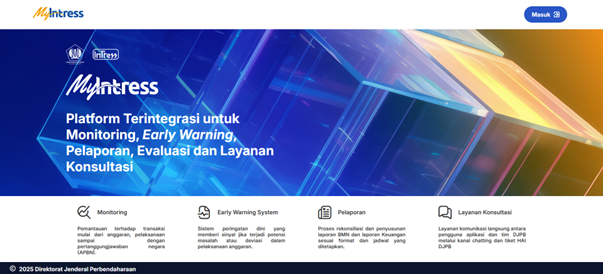 MyIntress menjadi sumber rujukan kebenaran tunggal data atas pengelolaan APBN dimana informasi perencanaan, pelaksanaan dan pelaporan keuangan APBN dikumpulkan, disimpan, dan dikelola dalam satu lokasi secara terpusat.