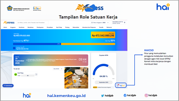 Tampilan MyIntress dibedakan dalam beberapa level, yaitu Satuan Kerja, Kantor Pelayanan Perbendaharaan (KPPN), Kantor Wilayah (Kanwil).