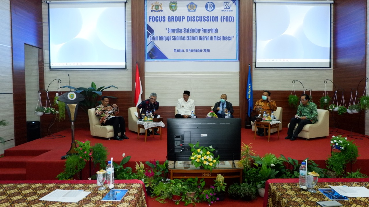 Dampak pandemi COVID-19 sangat massif terhadap keberlangsungan ekonomi, begitu juga di Kota Madiun. Bukan hanya dibidang kesehatan, pandemi juga mengakibatkan keadaan ekonomi tertekan. Kondisi tersebut mendorong Kantor Pelayanan Perbendaharaan Negara (KPPN) Madiun menggelar Forum Group Discussion (FGD) dengan tema Sinergitas Stakeholder Pemerintah dalam Menjaga Stabilitas Ekonomi dalam Menjaga Stabilitas Ekonomi Daerah di Masa Resesi.