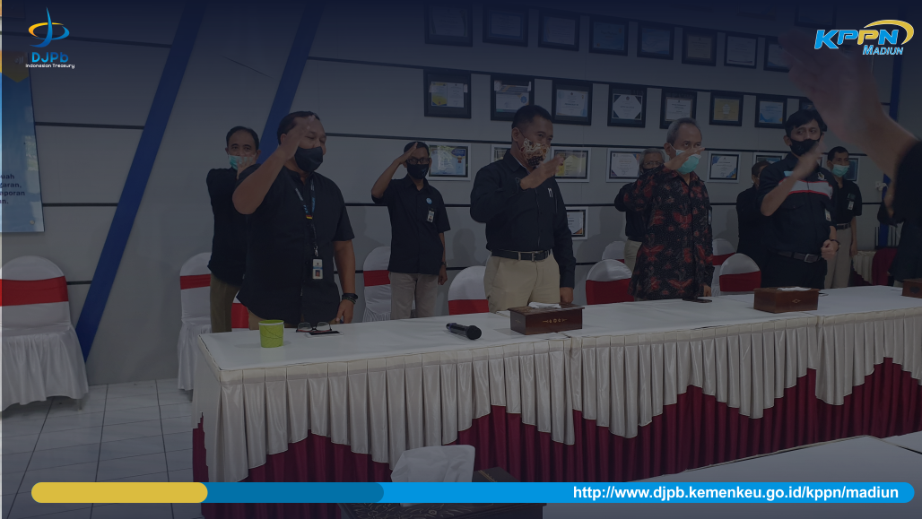 Selanjutnya, disela-sela kegiatan Rapat Kordinasi Pengelolaan Keuangan Tingkat Kemeneterian Keuangan secara daring, Kutfi Jusmintari, Kepala KPPN Madiun, menyempatkan hadir dalam acara penandatanganan Pakta Integritas KPPN Madiun. Kegiatan internalisasi ditutup dengan acara yel-yel antikorupsi oleh seluruh pegawai KPPN Madiun.