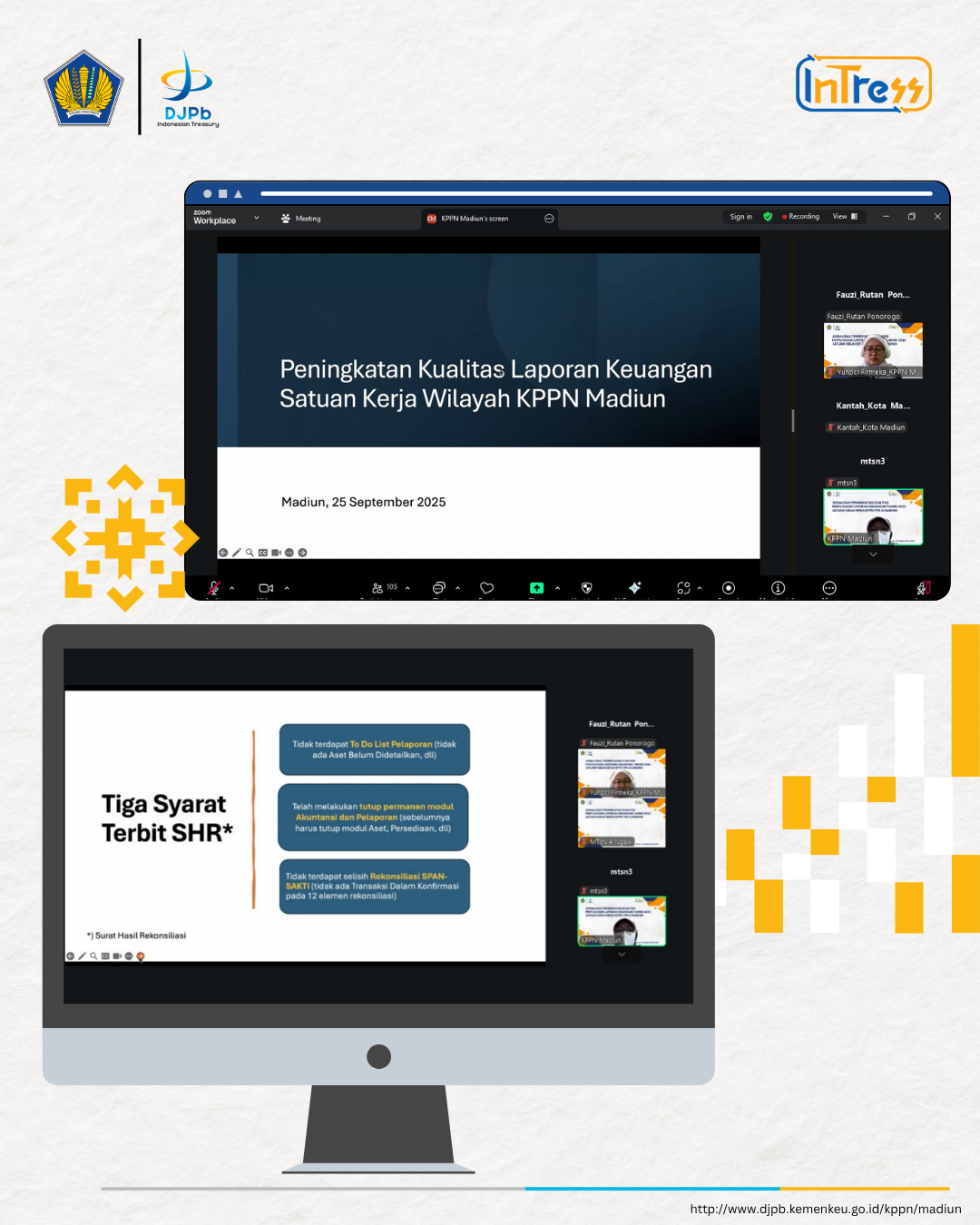 Pada kesempatan tersebut, PTPN KPPN Madiun memaparkan berbagai hal penting yang menjadi perhatian dalam proses penyusunan laporan keuangan, antara lain kewajiban rekonsiliasi data, penyelesaian to do list aplikasi, serta ketepatan penggunaan akun belanja. Selain itu, juga ditekankan pentingnya koordinasi antarunit dalam satu satker agar setiap tahapan penyusunan laporan dapat berjalan lancar dan konsisten.