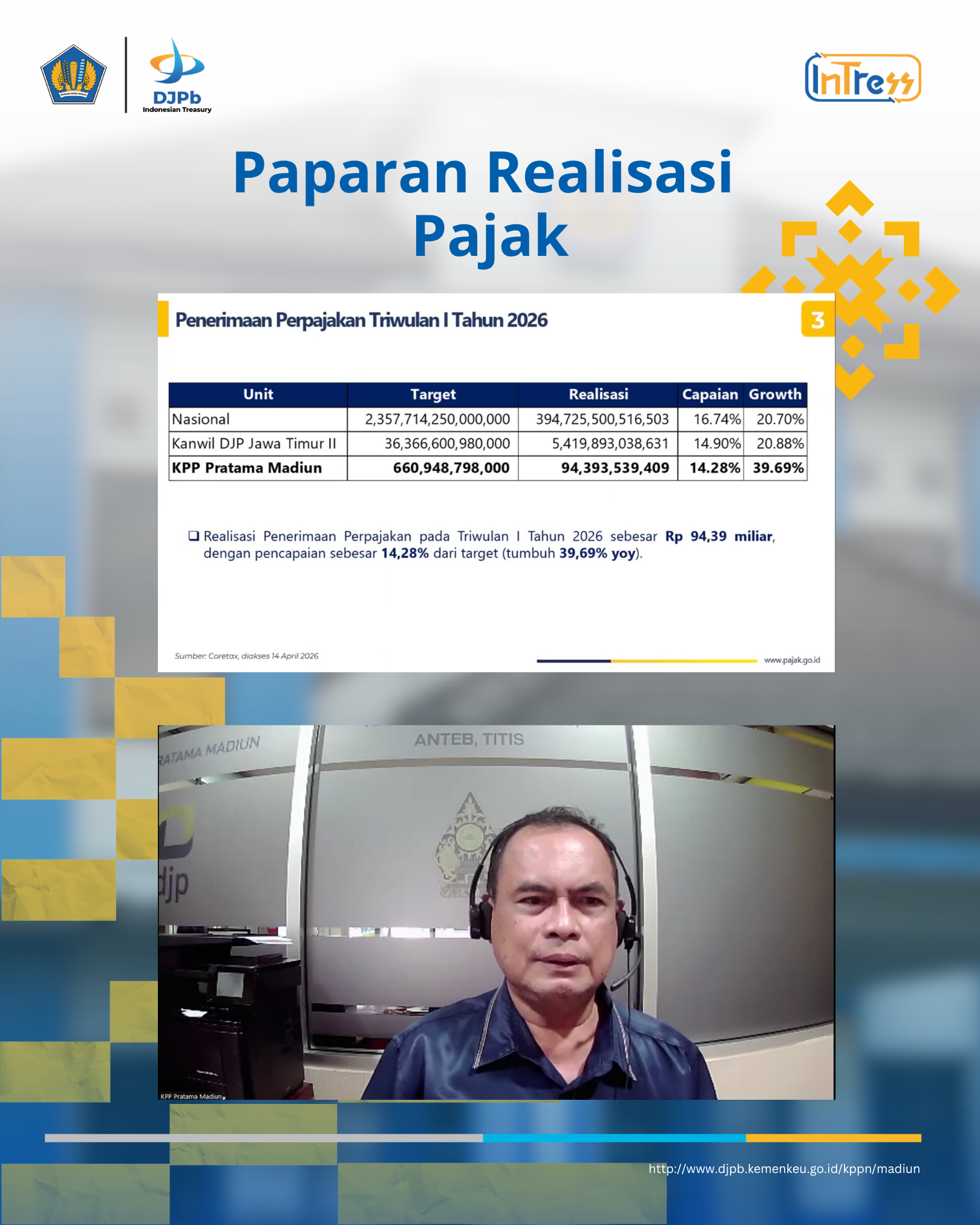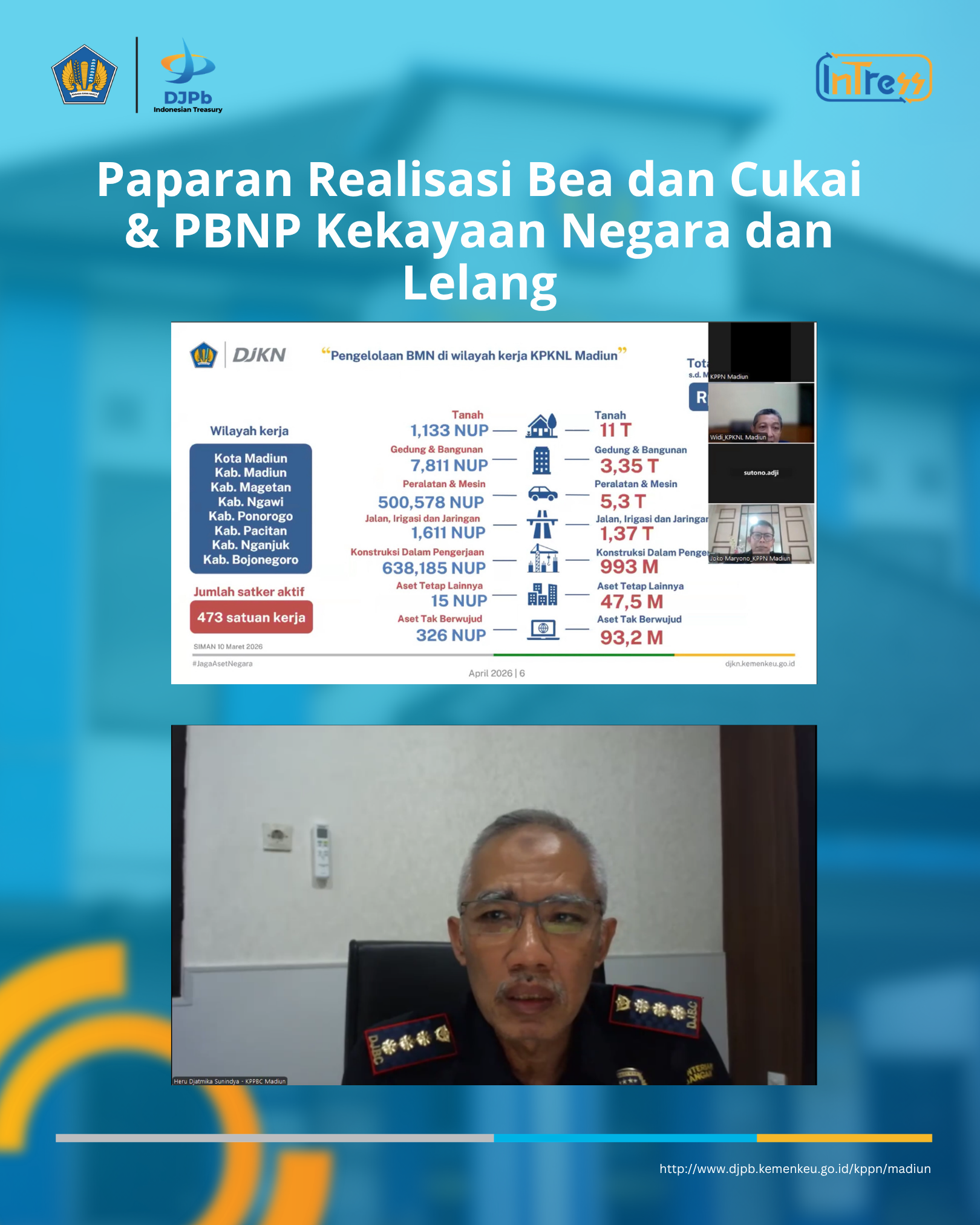 Melalui Siaran Pers APBN Kemenkeu Satu Madiun Raya yang digelar secara daring pada Rabu (15/04/2026), para pengelola keuangan satuan kerja dan pemerintah daerah bersama dengan pimpinan kantor vertikal Kemenkeu Satu di Madiun Raya, kembali dipertemukan dalam satu ruang yang sama, ruang untuk berbagi informasi, memperkuat sinergi, serta membaca arah kebijakan fiskal ke depan.