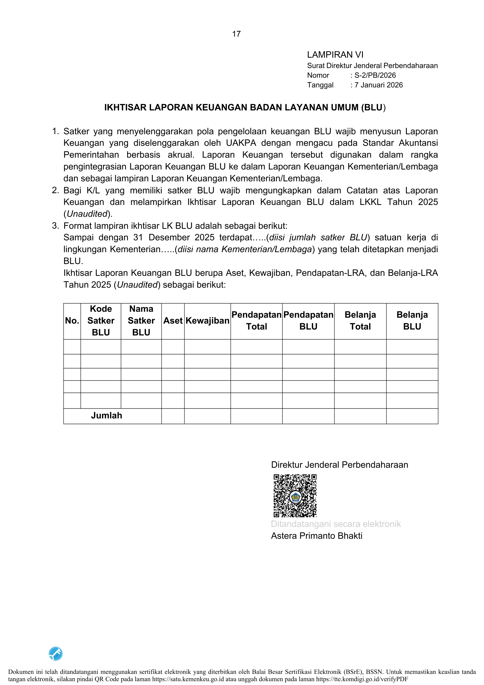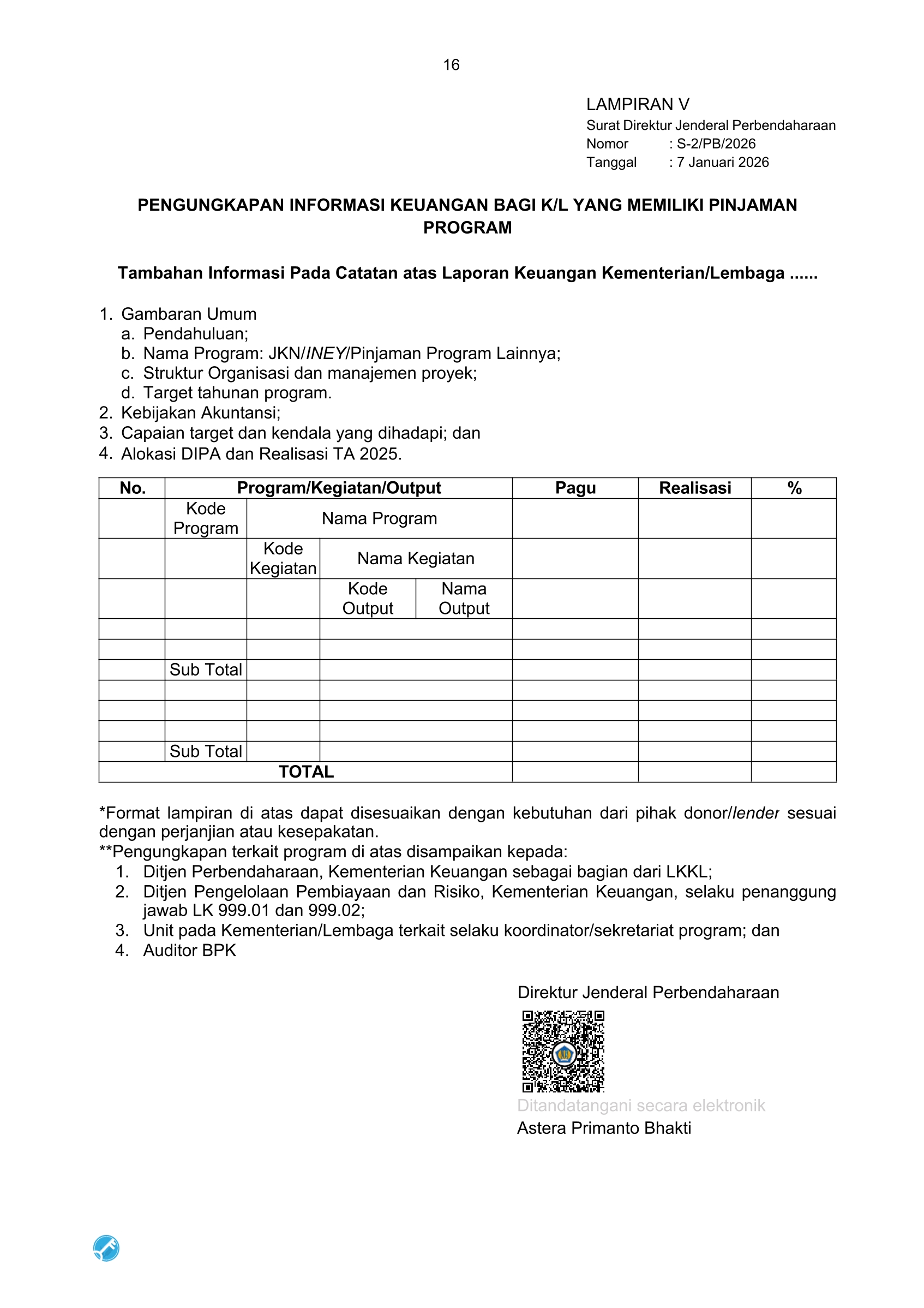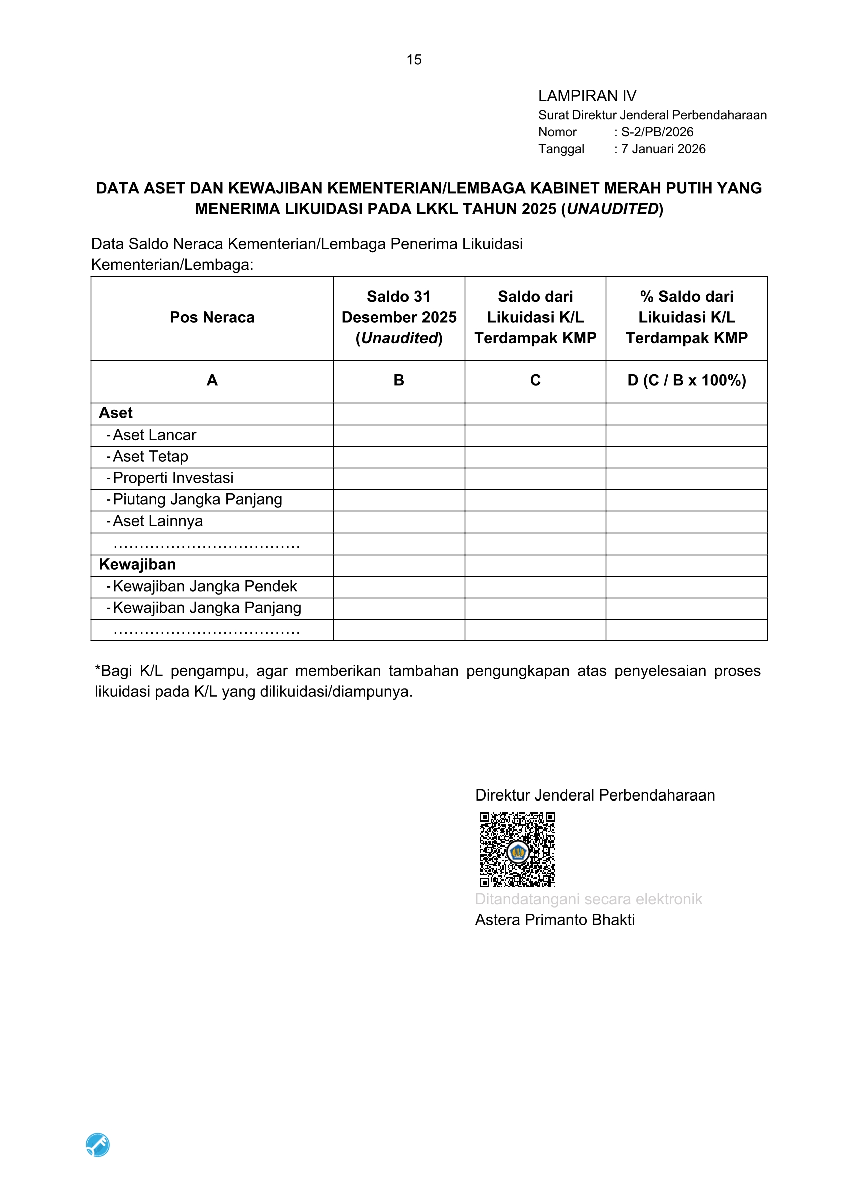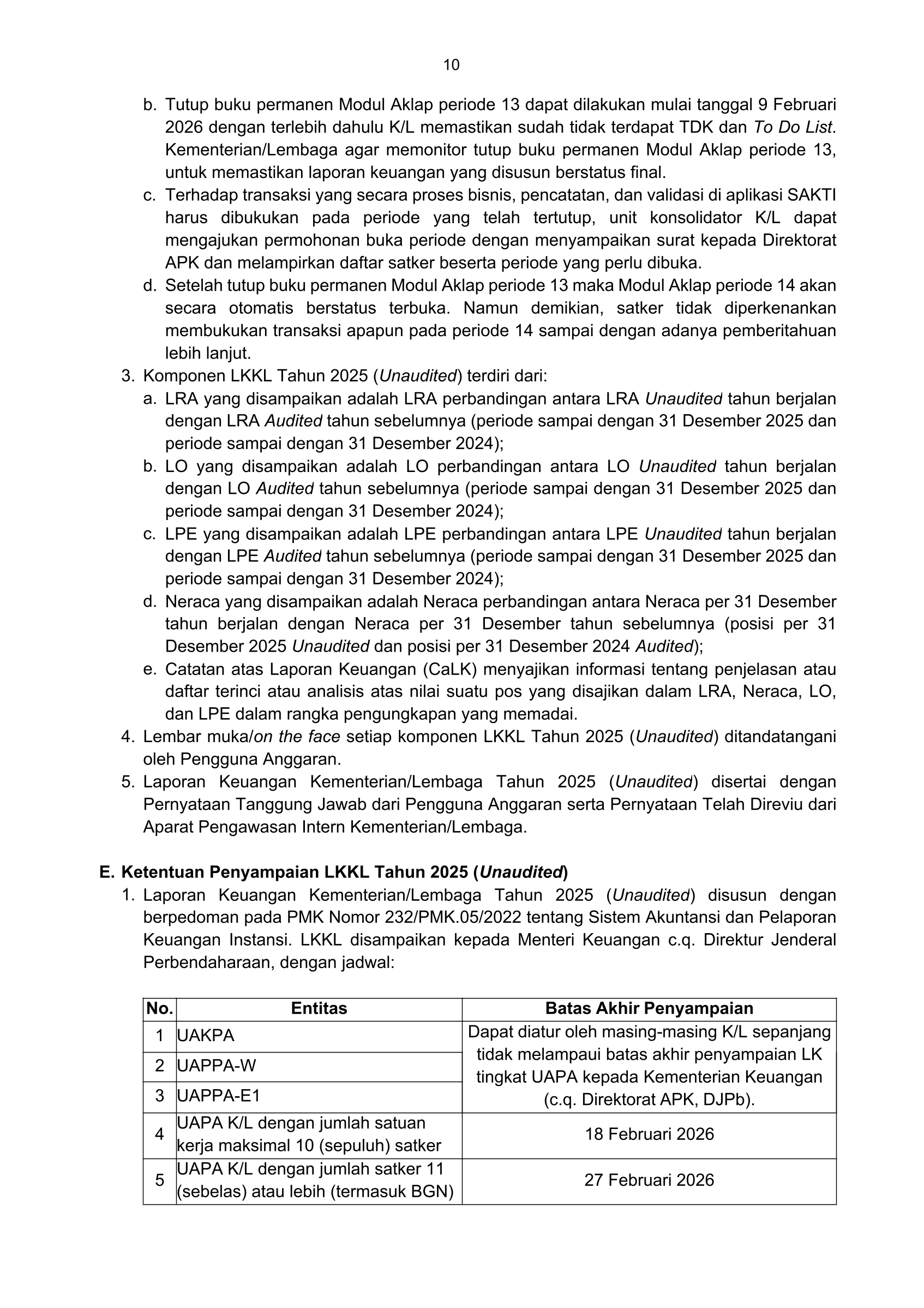 S-60/KPN.1607/2026 Pedoman Penyusunan dan Penyampaian Laporan Keuangan Kementerian/Lembaga Tahun 2025 (Unaudited)