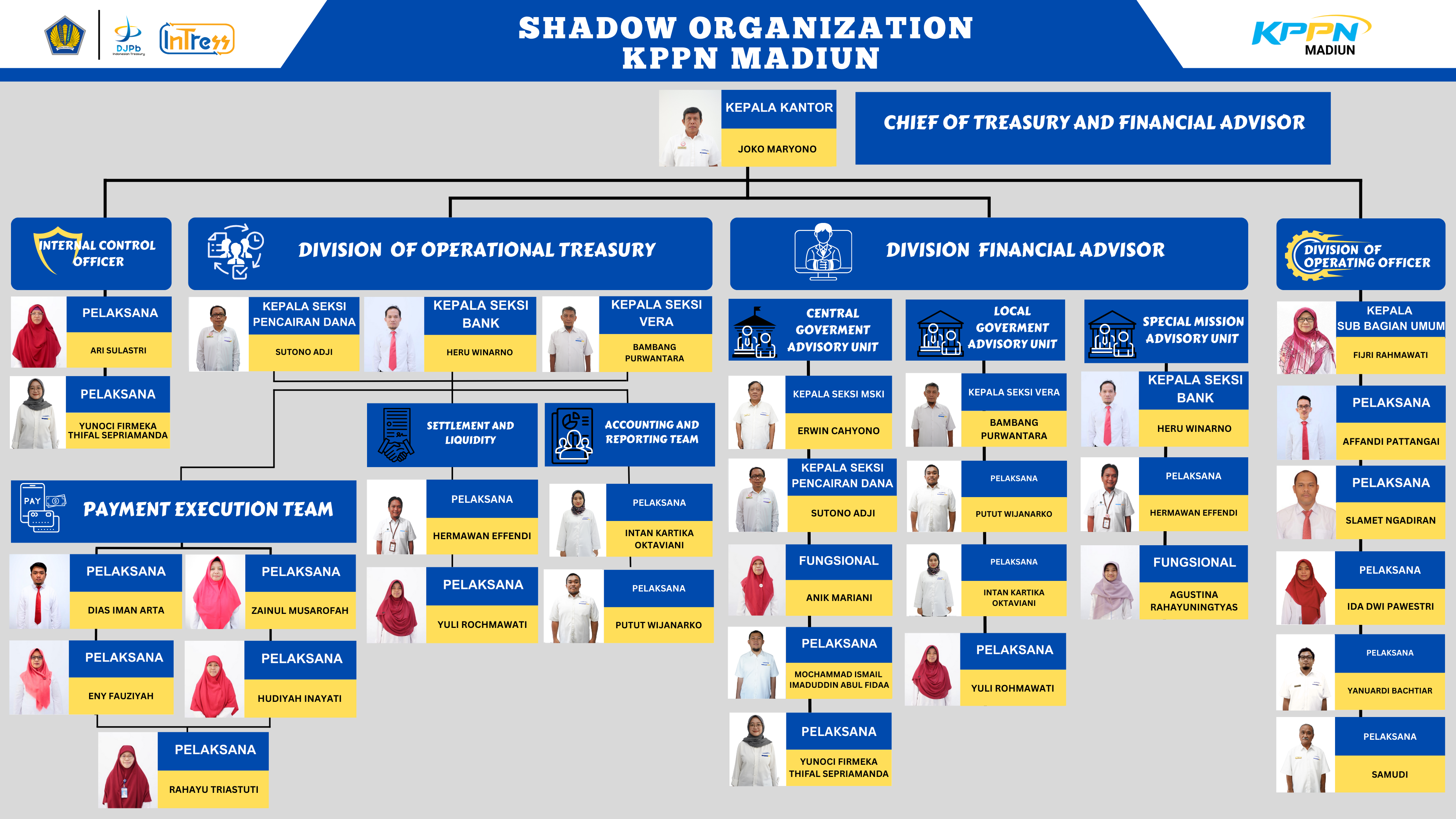 Struktur Organisasi Kantor Pelayanan Perbendaharaan Negara Madiun berdasarkan Keputusan Direktur Jenderal Perbendaharaan Nomor KEP-3/PB/2023 tentang Pembentukan Shadow Organization Pada Kantor Pelayanan Perbendaharaan Negara