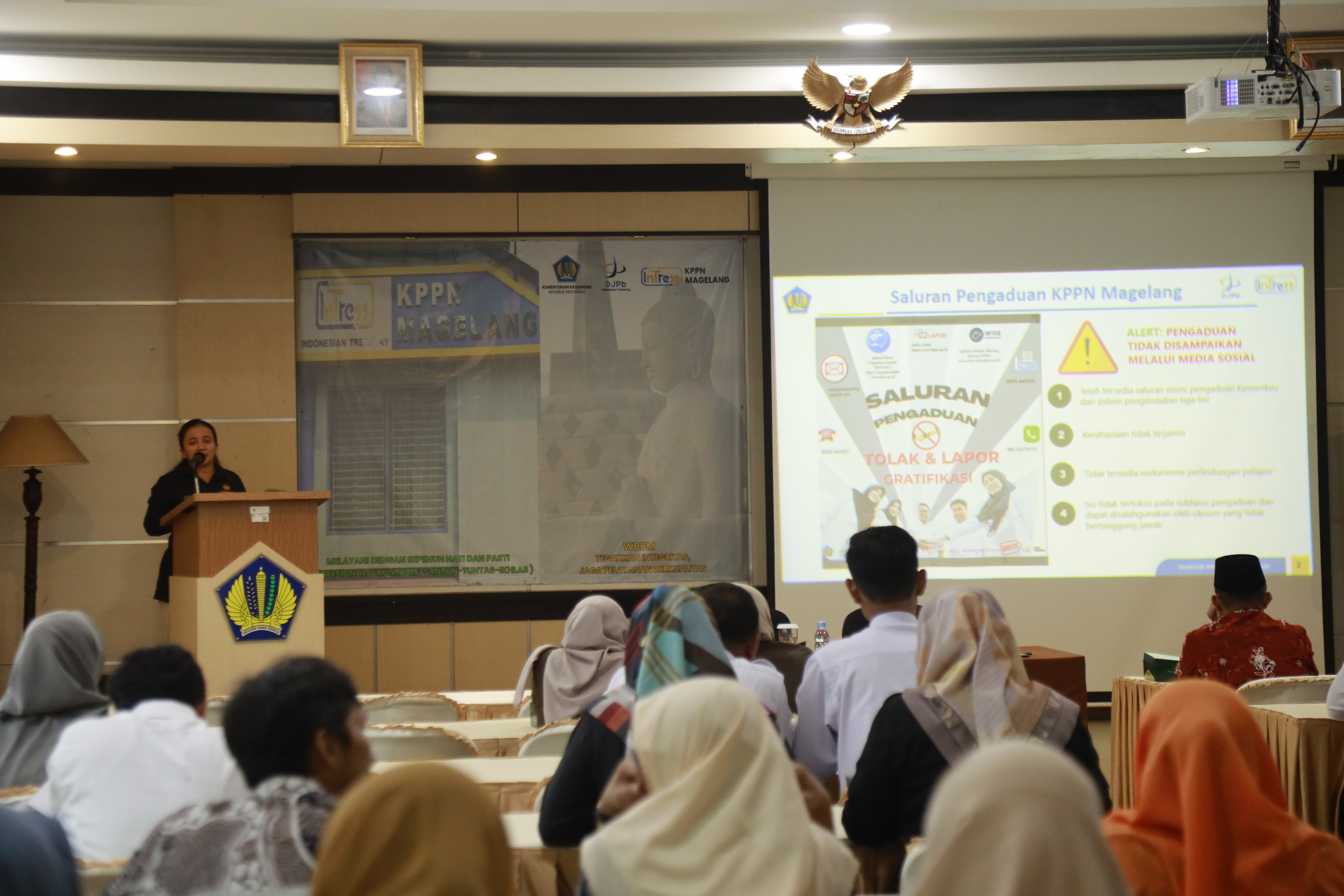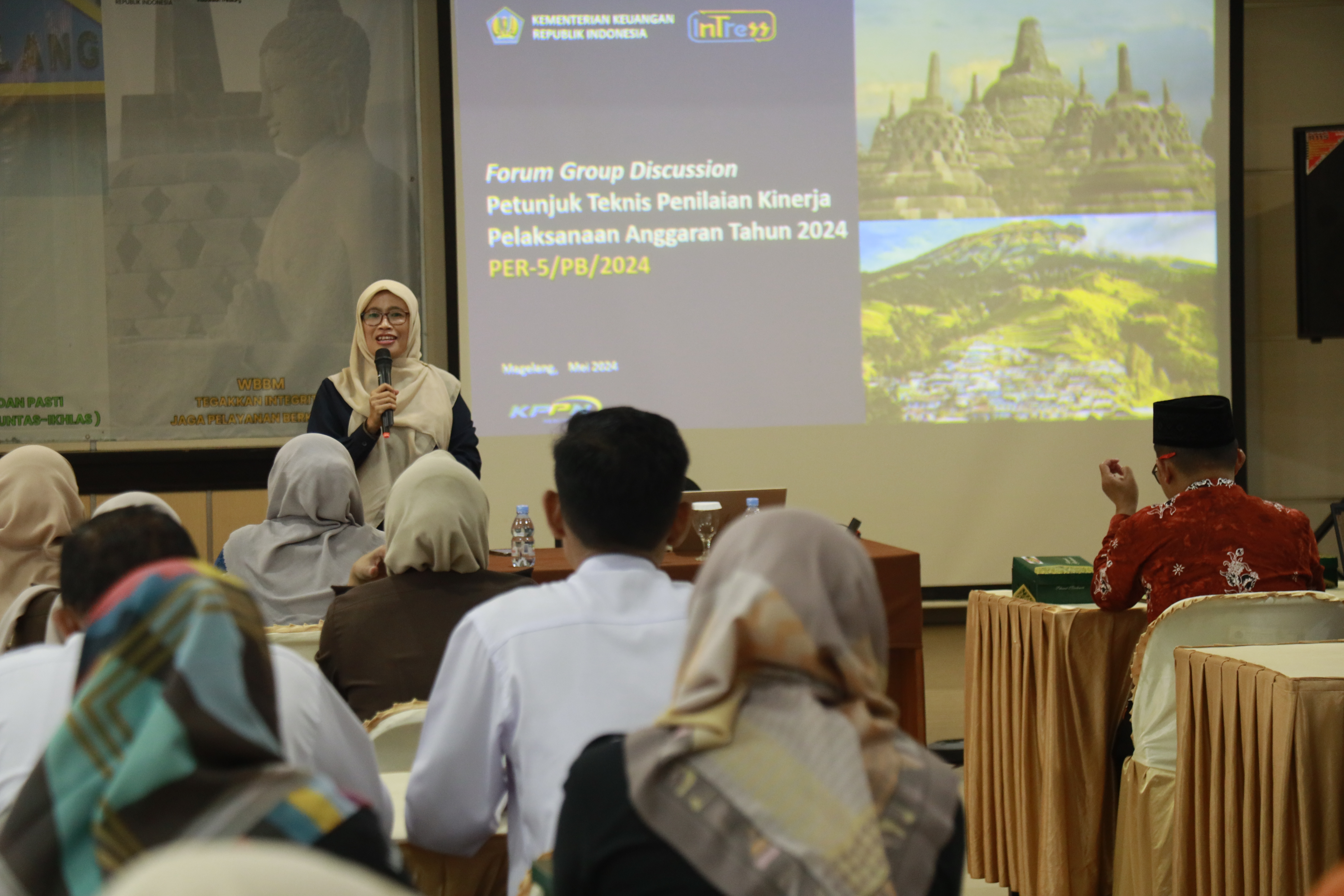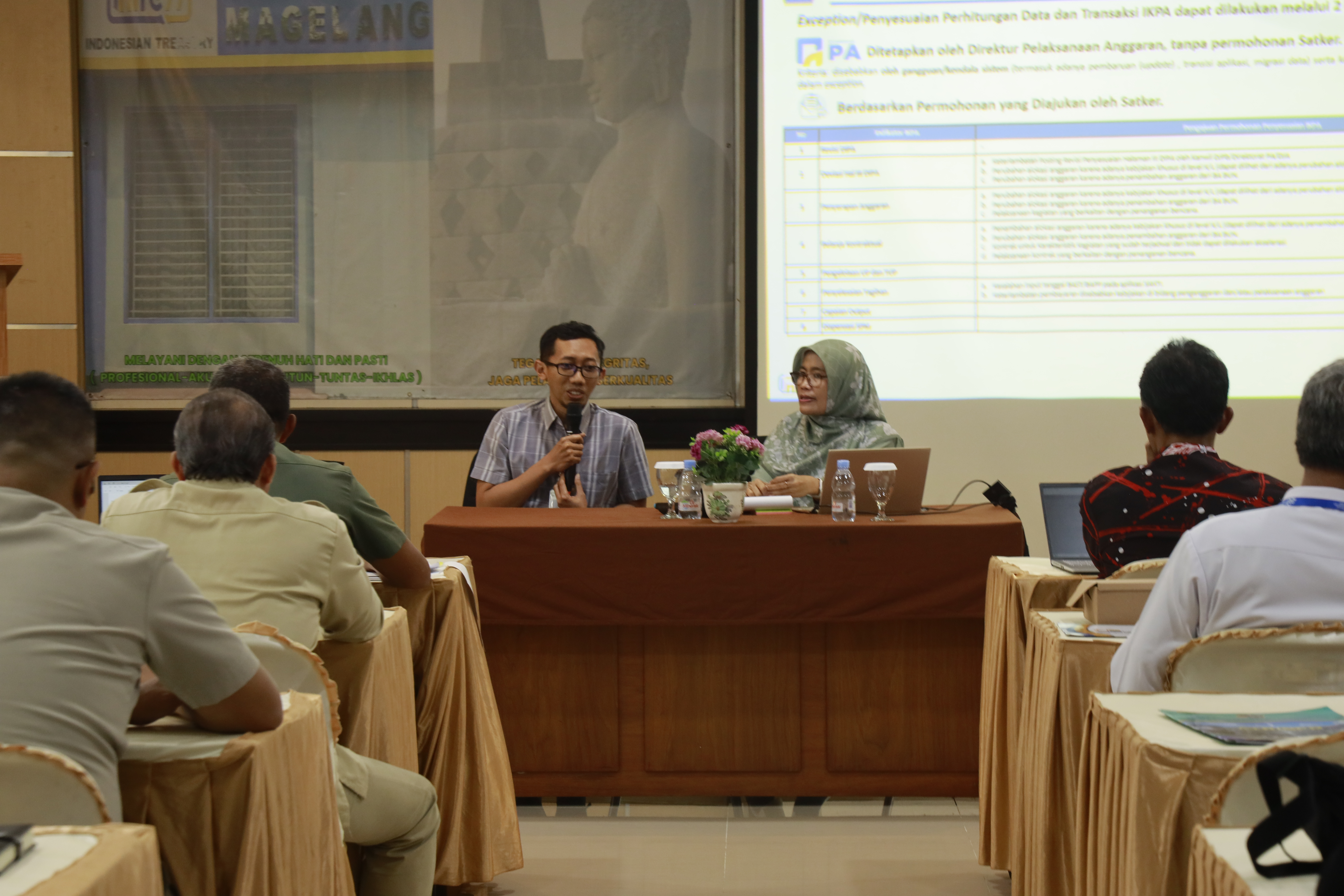Dalam rangka memberikan edukasi kepada stakeholder terkait penilaian IKPA, KPPN Magelang menyelenggarakan FGD Perdirjen Perbendaharaan Nomor PER-5/PB/2024 tentang Petunjuk Teknis Penilaian Kinerja Pelaksanaan Anggaran Belanja Kementerian Negara/Lembaga sekaligus Press Release Realisasi APBN s.d. April 2024 pada Selasa (28/5) dan Rabu (29/5) di Aula KPPN Magelang. Plt. II Kepala KPPN, Ibu Chatarina memberikan sambutan dan menyampaikan kinerja realisasi APBN pada lingkup KPPN Magelang untuk periode 1 Januari s.d. 30 April 2024 kepada para peserta, dalam hal ini perwakilan satker yang dihadiri oleh PPK dan bendahara. “Diharapkan dengan adanya reformulasi ini, satuan kerja mitra KPPN Magelang dapat meningkatkan akselerasi belanja dan ketercapaian output belanja, juga menyempurnakan aspek penilaian kinerja sesuai konteks kualitas belanja”, pesan Plt. II Kepala KPPN dalam sambutannya. Acara dilanjutkan dengan pemaparan oleh Jabatan Fungsional PTPN selaku narasumber tentang Monev Pelaksanaan Anggaran dan Reformulasi IKPA Tahun 2024.
