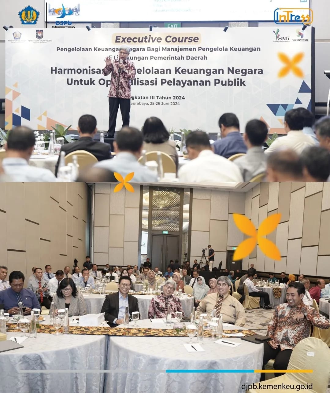 Dalam Executive Course Pengelolaan Keuangan Negara bagi Manajemen Pengelola Keuangan di Lingkungan Pemda di Surabaya, Selasa (26/06), Direktur Jenderal Perbendaharaan Astera Primanto Bhakti menyampaikan bahwa pertumbuhan ekonomi regional sudah membaik di berbagai daerah, meskipun perekonomian masih terkonsentrasi di Jawa. Namun, pengambil kebijakan perlu tetap waspada akan tekanan perkembangan ketidakpastian global yang berisiko berdampak terhadap perekonomian regional melalui berbagai jalur transmisi.