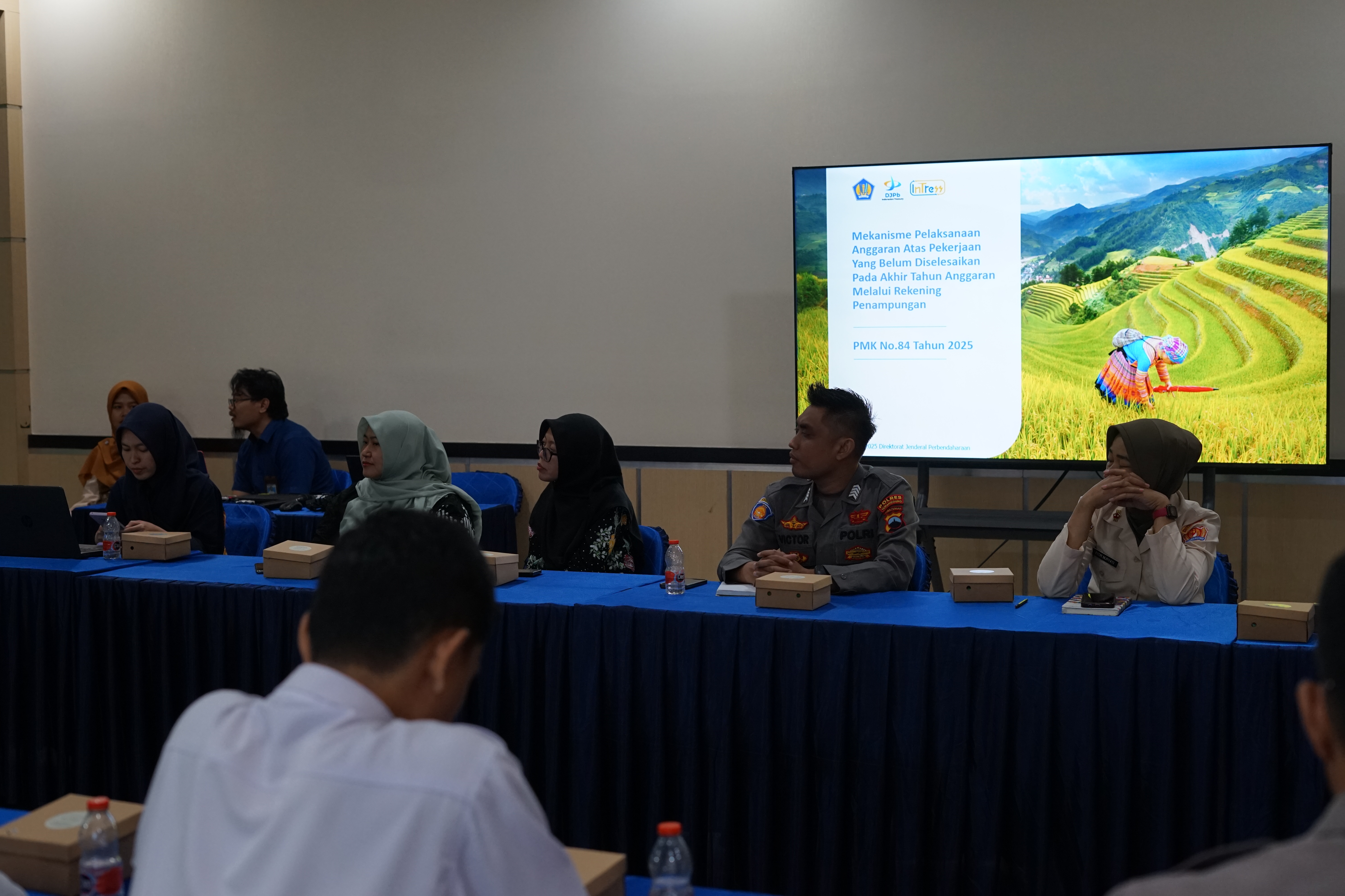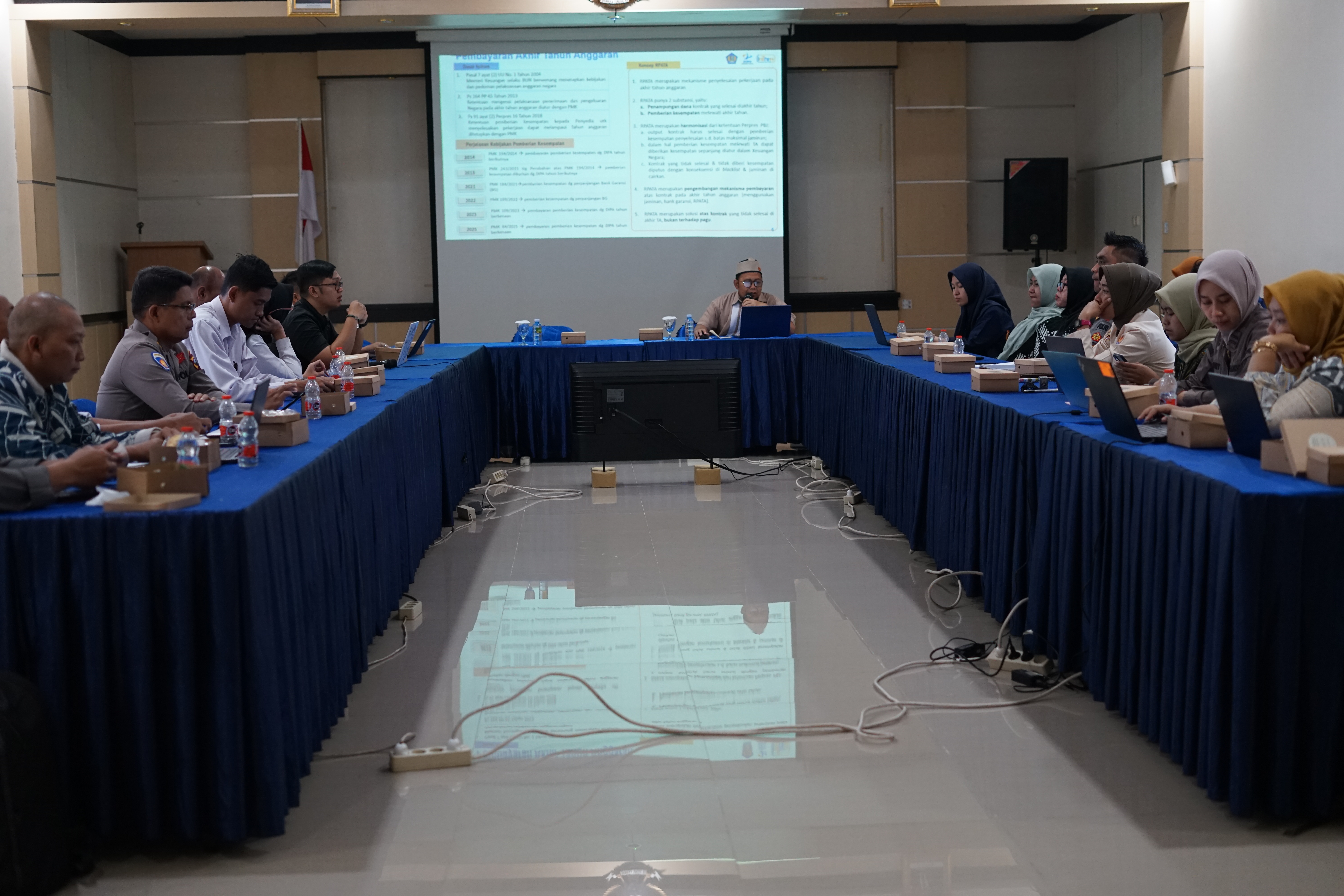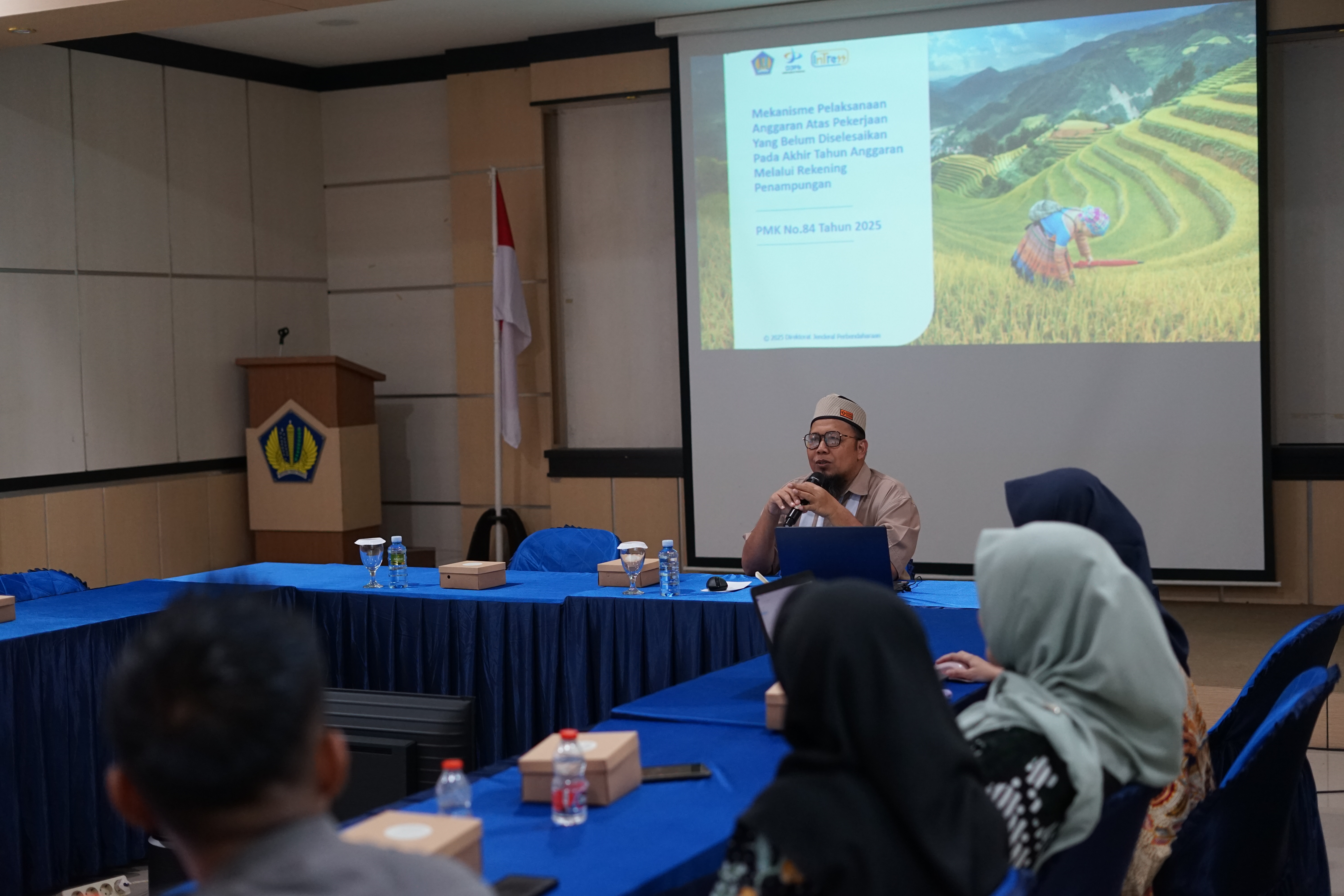 Narasumber Bimtek PMK Nomor 84 Tahun 2025 adalah CSO Jafung PTPN KPPN Magelang, Bapak Herwan Agus Jatmiko. Materi yang disampaikan mencakup pembayaran pekerjaan akhir tahun, substansi perubahan dari peraturan sebelumnya, sistematika pengaturan, dan proses bisnis RPATA dan RPATA BLU.