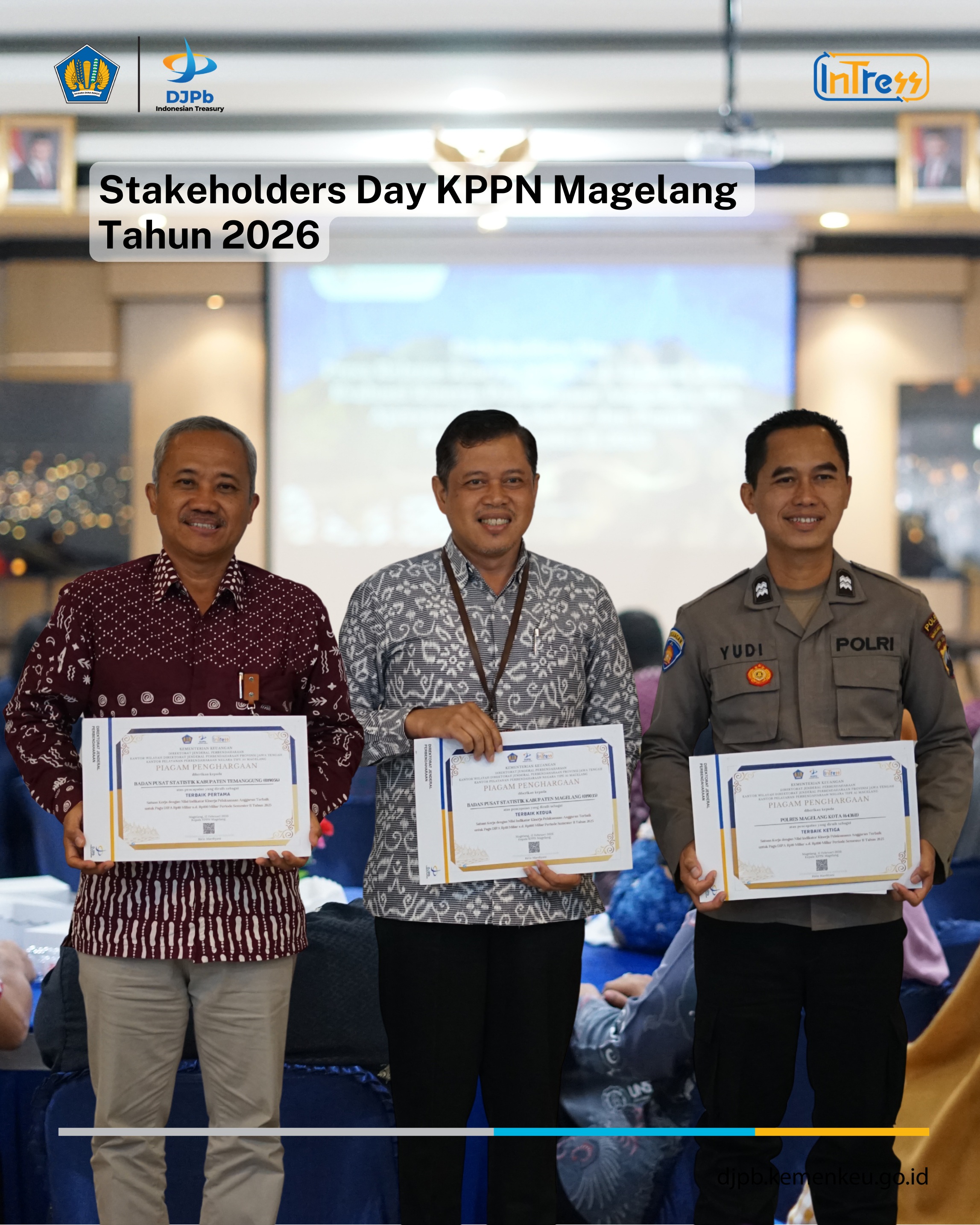 KPPN Magelang menyelenggarakan Stakeholders Day pada Kamis 12 Februari 2026 bertempat di Aula KPPN Magelang. Acara ini dihadiri oleh para Kuasa Pengguna Anggaran satker di wilayah kerja KPPN Magelang. Dalam pertemuan ini terdapat beberapa agenda yaitu Press Release Kinerja APBN, Evaluasi Kinerja Pelaksanaan Anggaran, dan Apresiasi Kinerja Satker dan Pemda Periode Semester II 2025. Kepala KPPN Magelang, Ibu Ririn Mardiyani memberikan sambutan dan menyampaikan Press Release APBN di lingkup wilayah kerja KPPN Magelang s.d. Januari 2026. Dilanjutkan dengan penyampaian evaluasi kinerja pelaksanaan anggaran oleh Kepala Seksi MSKI, Bapak Imam Agus Sutono.
