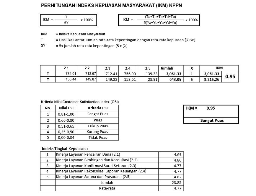 Berikut kami lampirkan detail perhitungan Indeks Kepuasan Masyarakat (IKM) atas layanan yang diberikan oleh KPPN Majene :
