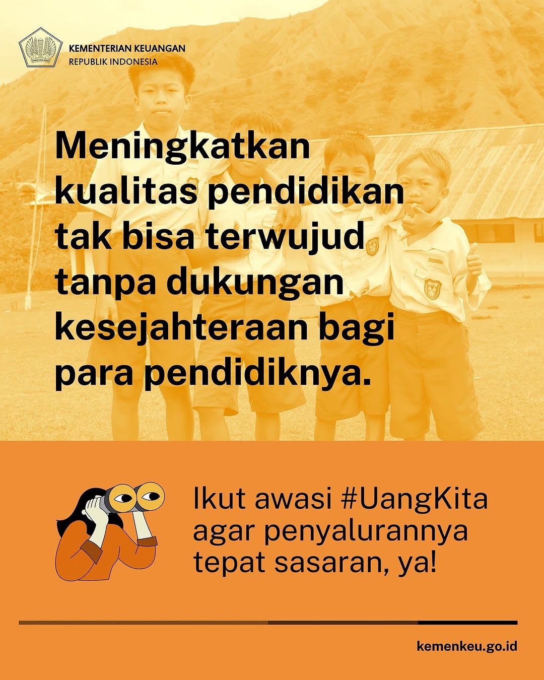 Dalam RAPBN 2026, Rp757,8T #UangKita akan dialokasikan untuk meningkatkan kualitas pendidikan, dengan Rp274,7T di antaranya untuk mendukung kesejahteraan Guru, Dosen, dan Tenaga Pendidik.