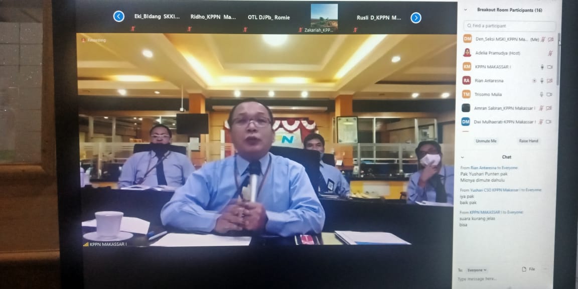 Rapat Koordinasi (Rakor) IKPA Semester II Tahun Anggaran 2020 KPPN Makassar I dilaksanakan pada hari Selasa tanggal 9 Februari 2021 bertempat di Guardian Hall KPPN Makassar I yang dihadiri secara terbatas (secara daring dan luring) dan sesuai protokol kesehatan. Untuk peserta daring sangat spesial karena dihadiri langsung oleh Kuasa Pengguna Anggaran satker yang meraih predikat terbaik sedangkan peserta lainnya mengikuti secara luring melalui zoom meeting.