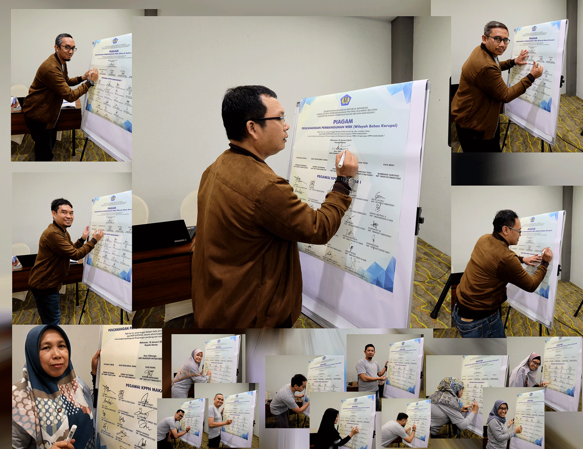 Rangkaian kegiatan Capacity Building di hotel Maxone meliputi Internalisasi WBK/WBBM yang dilanjutkan dengan penandatanganan piagam pembangunan WBK (Wilayah Bebas Korupsi) oleh seluruh pegawai KPPN Makassar I, Dialog Kinerja Organisasi, dan pemaparan tentang Transformasi Kelembagaan (Quick Win DJPB 2019) yang dibawakan oleh Duta Transformasi Kelembagaan.