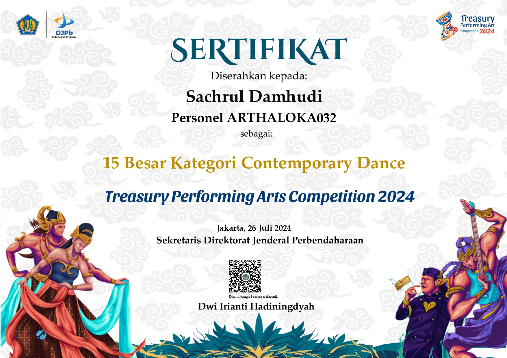 6. 15 Besar Treasury Performing Art Competition (TPAC) Tahun 2024 Kategori Tari Kontemporer atas nama Tim Arthaloka: