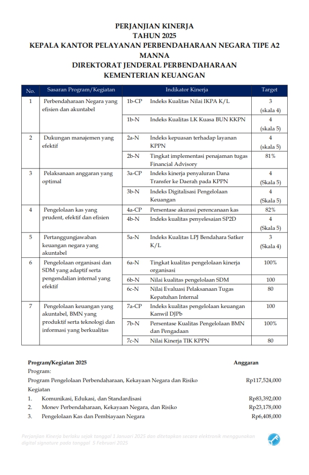 Perjanjian Kinerja 12 Nov,2025 Perjanjian Kinerja dan SKP Perjanjian Kinerja KPPN Manna Tahun 2025 Sebelum Berikut