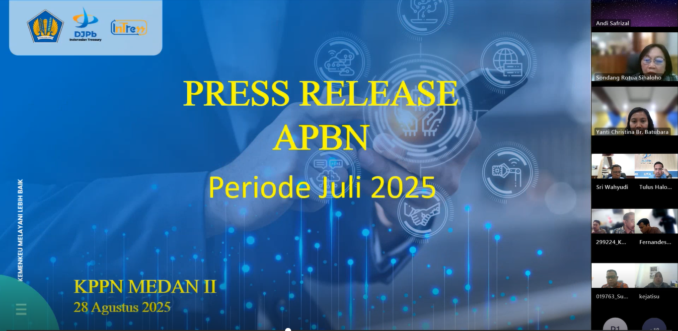 Kamis (28/08) telah dilaksanakan kegiatan Press Release APBN Periode Juli 2025 dengan mengundang Satuan Kerja Lingkup KPPN Medan II.
