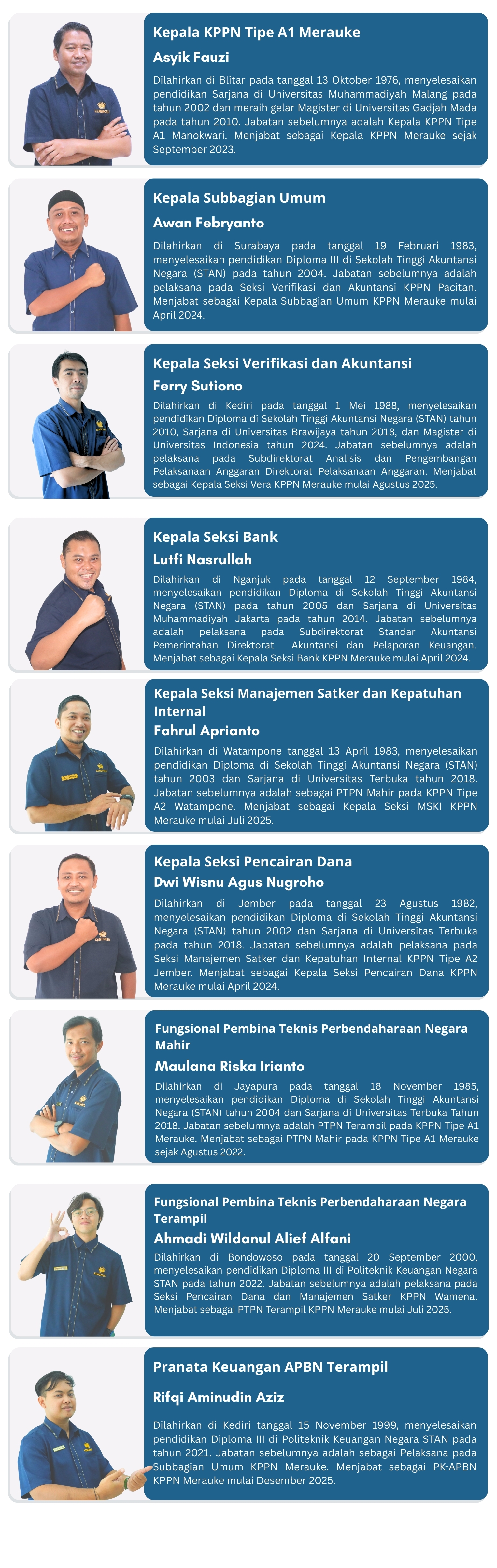 Tim KPPN Merauke yang berangkat ke Asmat terdiri atas perwakilan Seksi Bank, Seksi Pencairan Dana (PD), dan Seksi Manajemen Satker dan Kepatuhan Internal (MSKI). Masing-masing seksi tersebut memiliki agenda sendiri. Seksi Bank memiliki agenda dengan pemerintah daerah Kabupaten Asmat untuk kegiatan Pembinaan dan Asistensi Penyaluran Transfer ke Daerah TA 2024 dan kegiatan Profiling UMKM pada Pemerintah Kab. Asmat.