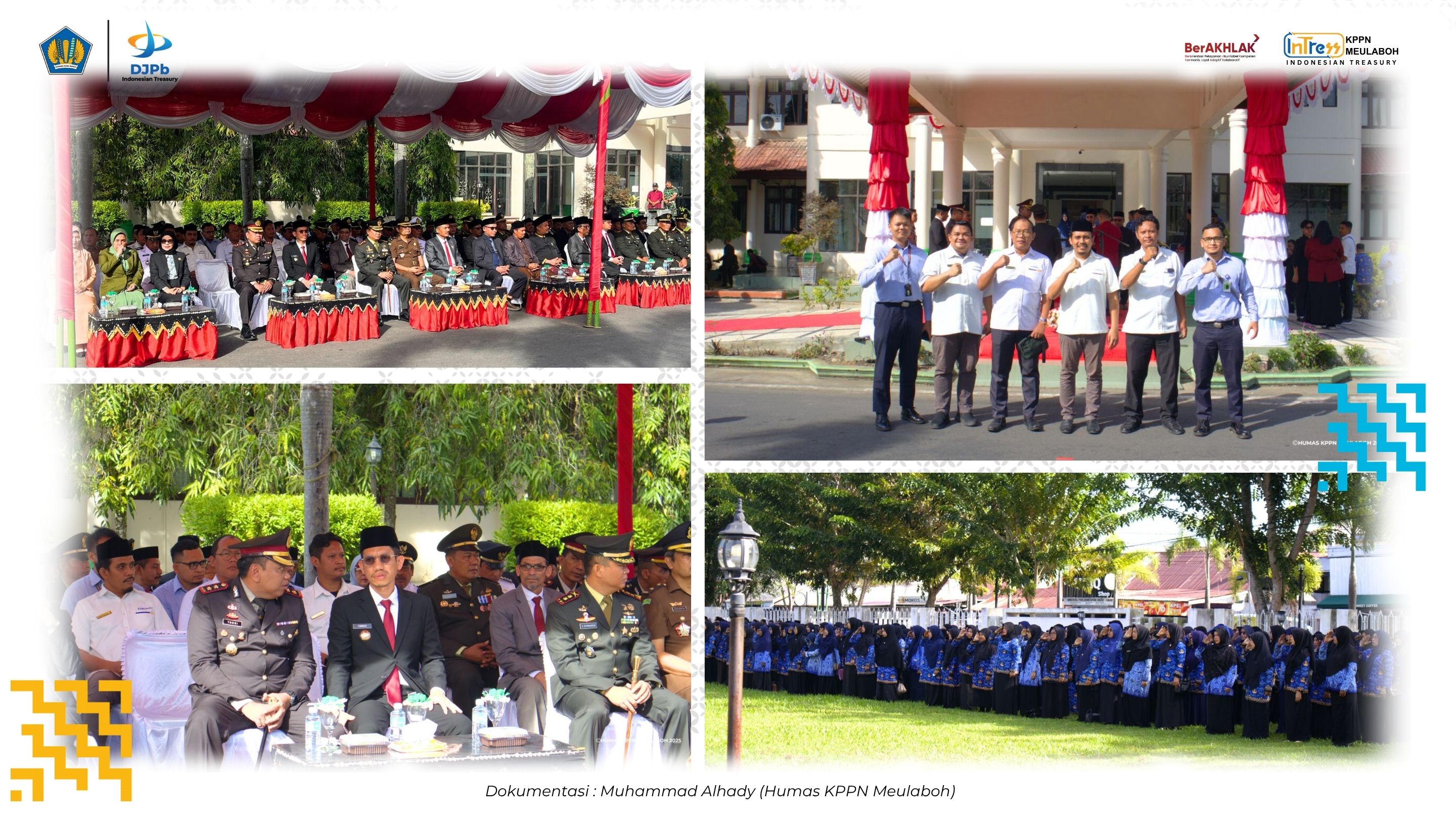 Dalam, rangka memperingati Hari Kesaktian Pancasila, KPPN Meulaboh bersama Kemenkeu Satu Meulaboh yang terdiri dari KPBC Meulaboh dan KPP Pratama Meulaboh mengikuti upacara di halaman kantor Bupati Aceh Barat pada Rabu, 1 Oktober 2025.