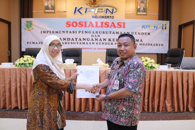Untuk mengimplementasikan pengarusutamaan gender (PUG) Kepala KPPN Mojokerto Ibu Riskian Lestari telah bekerja sama dengan Kepala Dinas Pemberdayaan Perempuan, Perlindungan Anak dan Keluarga Berencana Kota Mojokerto Bapak Moch. Imron terkait Pemajuan pengarusutamaan gender (PUG) pada KPPN Mojokerto. Kerja sama tersebut dalam bentuk pemberian pemahaman kepada pegawai melalui sosialisasi implementasi, asistensi dan penandatangan kerja sama pemajuan implementasi pengarusutamaan gender (PUG) pada KPPN Mojokerto.