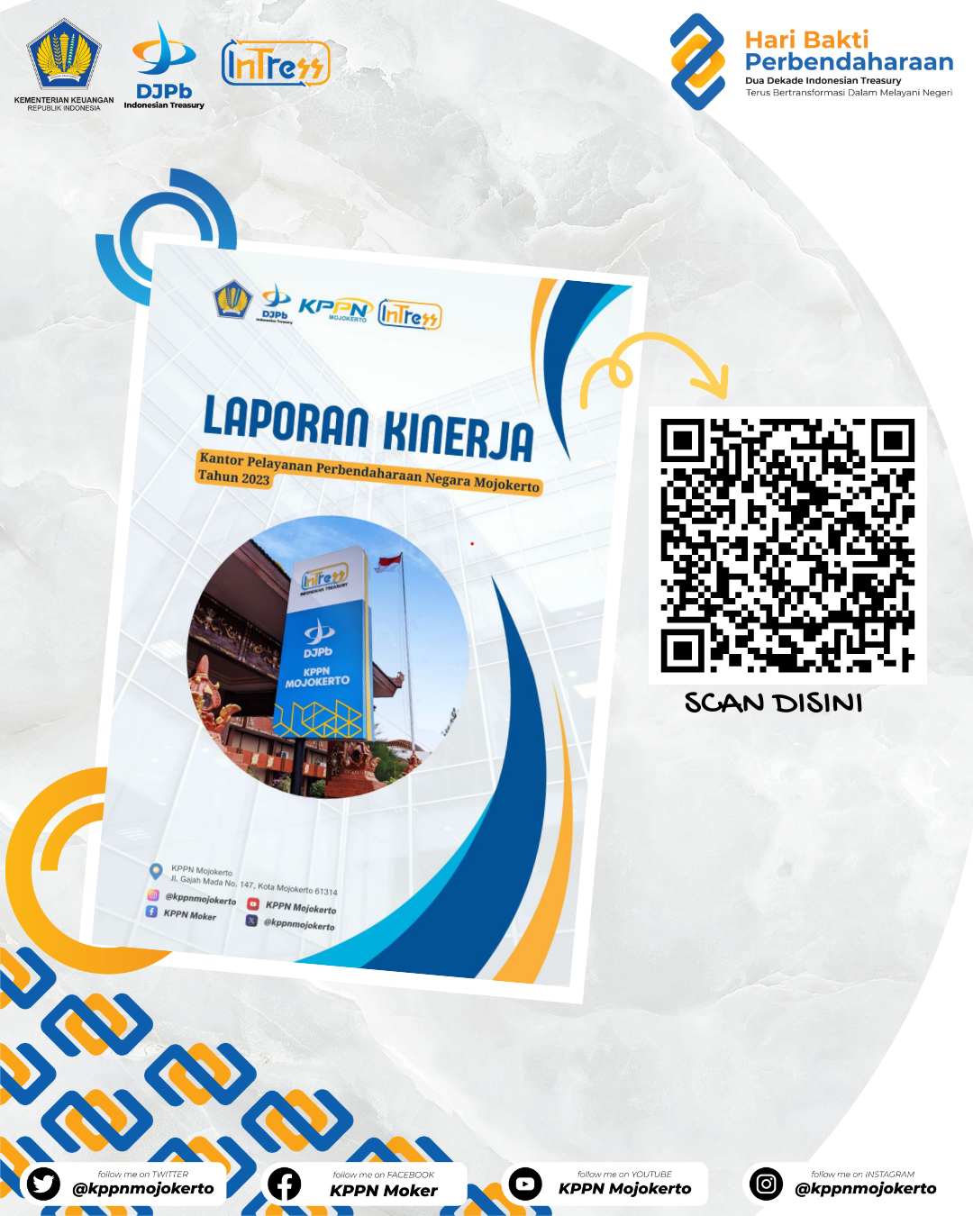 KPPN Mojokerto telah menyusun Laporan Kinerja (LAKIN) Tahun 2023 dimana laporan ini sebagai pertanggungjawaban kinerja telah dilaksanakan dalam tahun 2023.