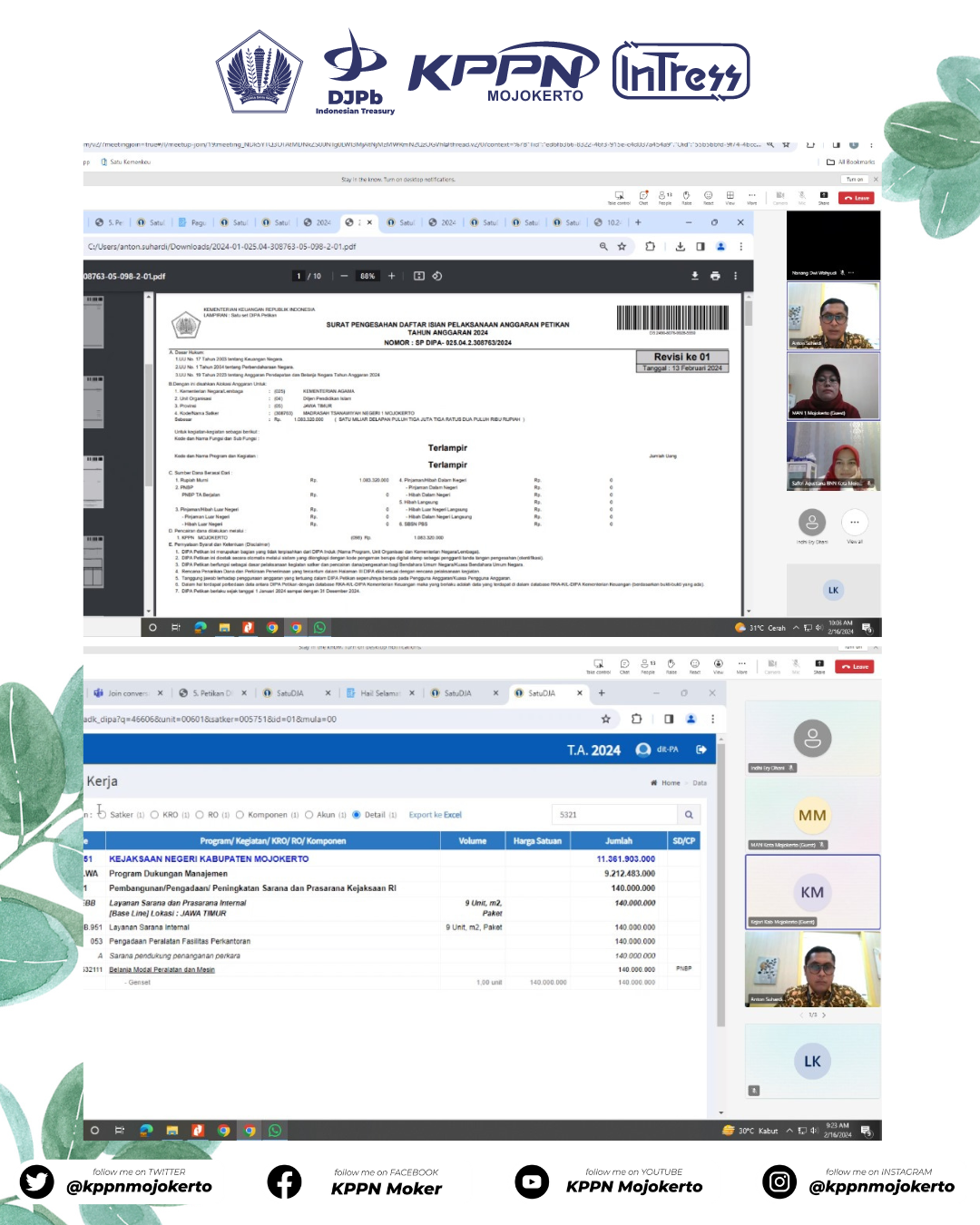 Telah dilaksanakan One on One Meeting yang membahas tentang strategi peningkatan indikator kinerja pelaksanaan anggaran Triwulan I Tahun 2024 serta memberikan asistensi pada Aplikasi SAKTI, DIGIPAY SATU, & KKP.