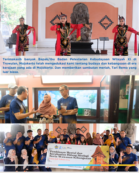 Kegiatan Pembinaan Mental dan Kerohanian (Bidang Ideologi) Bulan Juli 2024 dilaksanakan pada hari Jum'at tanggal 19 Juli 2024 Pukul 07.00 s.d. selesai bertempat di Museum Majapahit Trowulan - Jl. Pendopo Agung, Ngelinguk, Trowulan, Kab. Mojokerto dengan narasumber yaitu Tim dari Balai Pelestarian Kebudayaan Wilayah XI (Jawa Timur).