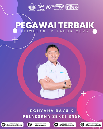 Setelah melalui proses penilaian kedisiplinan, kinerja, kinerja tambahan, dan voting, Pegawai Terbaik Triwulan IV Tahun 2023 diberikan kepada Rohyana Bayu K, Pelaksana Seksi Bank.