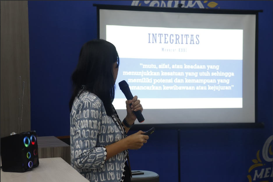 Jumat, 28 April 2023 KPPN Muara Bungo melaksanakan kegiatan Town Hall Meeting dengan Tema Integrity is Our Identity. Narasumber pada kegiatan tersebut yaitu Kepala KPPN Muara Bungo, Ambar Pusporini. Kegiatan yang bertujuan untuk meningkatkan semangat para pegawai untuk tetap berintegritas tersebut dihadiri oleh seluruh pejabat dan pegawai pada KPPN Muara Bungo. Kegiatan tersebut juga diharapkan dapat menumbuhkan kebanggaan sebagai pegawai Kemenkeu yang tetap berintegritas dalam menjalankan pekerjaan sehari-hari dengan menjunjung tinggi nilai-nilai Kemenkeu. Dalam materinya, Kepala KPPN Muara Bungo menekankan bahwa integritas adalah mutu, sifat atau keadaan yang menunjukan kesatuan yang utuh sehingga memiliki potensi dan kemampuan yang memancarkan kewibawaan atau kejujuran.