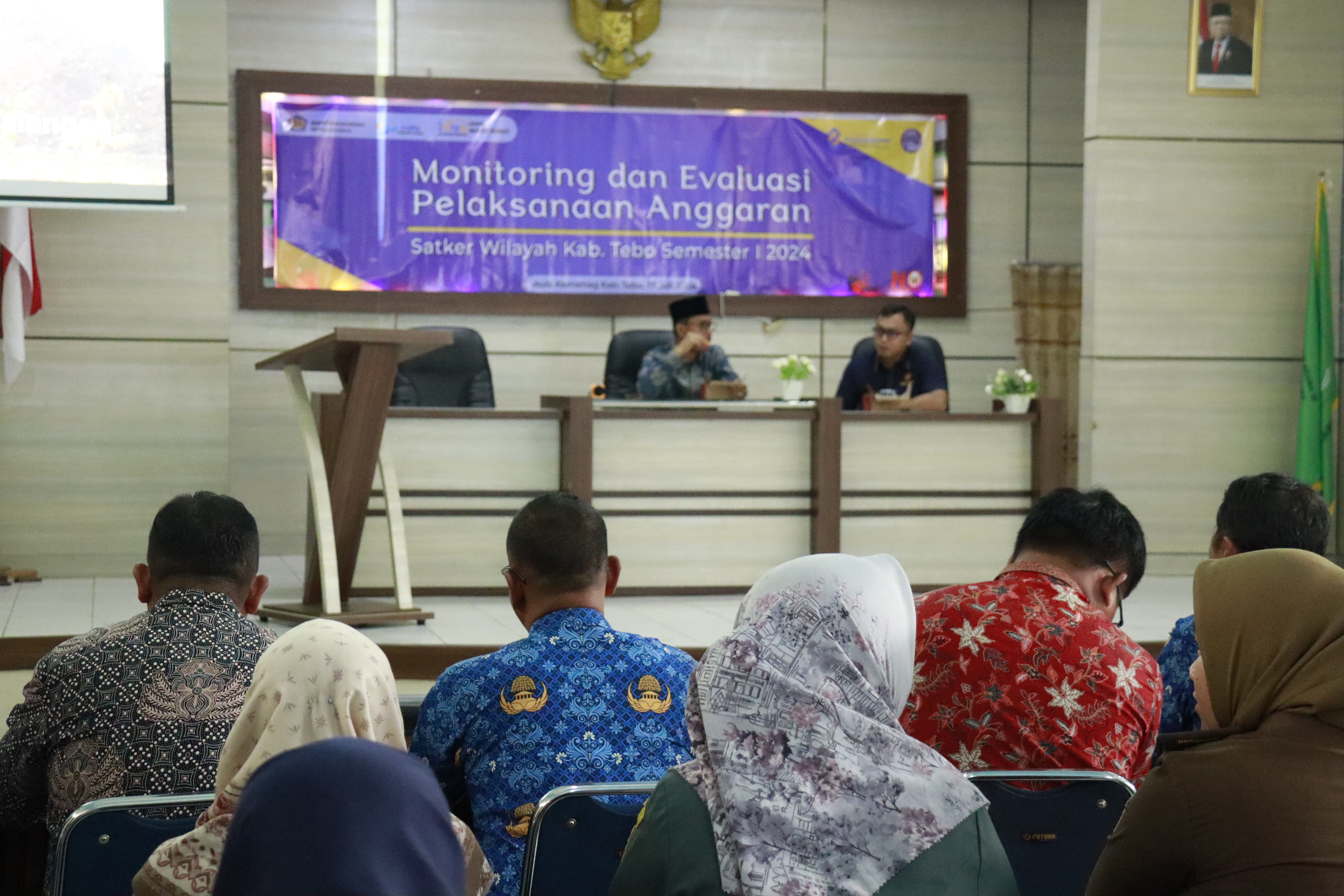 Kegiatan Monitoring Dan Evaluasi Pelaksanaan Anggaran Satker Wilayah Kab. Tebo Semester I 2024 diikuti oleh seluruh Satker lingkup KPPN Muara Bungo wilayah Kab. Tebo. Diharapkan seluruh Satker dapat memaksimalkan nilai IKPA dengan formula terbaru 2024, mengaktivasi dan melakukan transaksi secara digitalisasi dan segera mengajukan pendaftaran sertifikasi kompetensi bagi pejabat perbendaharaan yang belum memiliki sertifikat kompetensi. Kegiatan Monitoring Dan Evaluasi Pelaksanaan Anggaran Satker Wilayah Kab. Tebo Semester I 2024 berjalan dengan lancar dan tepat waktu. Seluruh materi disampaikan dengan lengkap dan baik. Seluruh satker mengikuti kegiatan dengan fokus dan hikmat.