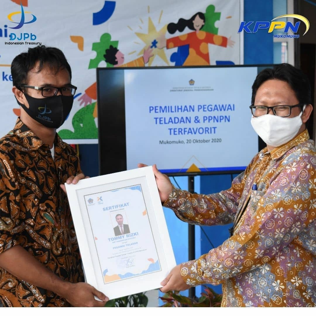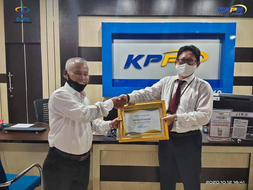 Kepala Bidang SKKI Kanwil DJPb Provinsi Bengkulu juga menyerahkan penghargaan kepada Kepala KPPN Mukomuko sebagai KPPN dengan nilai hasil pembinaan terbaik semester I 2020 yang menjadi pemicu semangat squad KPPN Mukomuko.