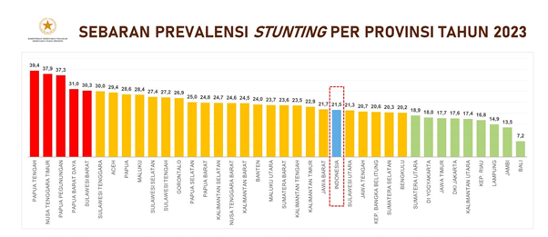 Stunting merupakan masalah serius di Indonesia, terutama di Provinsi Papua Tengah yang memiliki prevalensi stunting tertinggi se-Indonesia di tahun 2023, yaitu 39,4% (SKI, 2023). Kondisi ini menggambarkan gangguan pertumbuhan dan perkembangan anak yang disebabkan oleh kekurangan gizi kronis, yang berdampak pada kesehatan, kecerdasan, dan produktivitas anak di masa depan. Untuk menanggulangi masalah ini, pemerintah telah menetapkan percepatan penurunan stunting sebagai salah satu prioritas nasional dalam RPJMN 2020-2024 dan Perpres No. 72 tahun 2021.