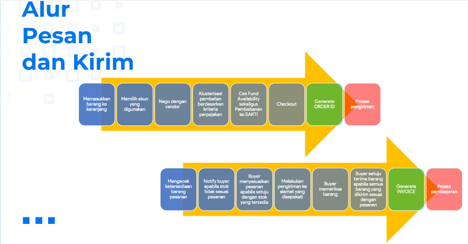 - Peningkatan efisiensi karena marketplace, sistem pembayaran pemerintah, sistem perbankan, perpajakan, dan pelaporan manajeral/keuangan terintegrasi dalam satu ekosistem
