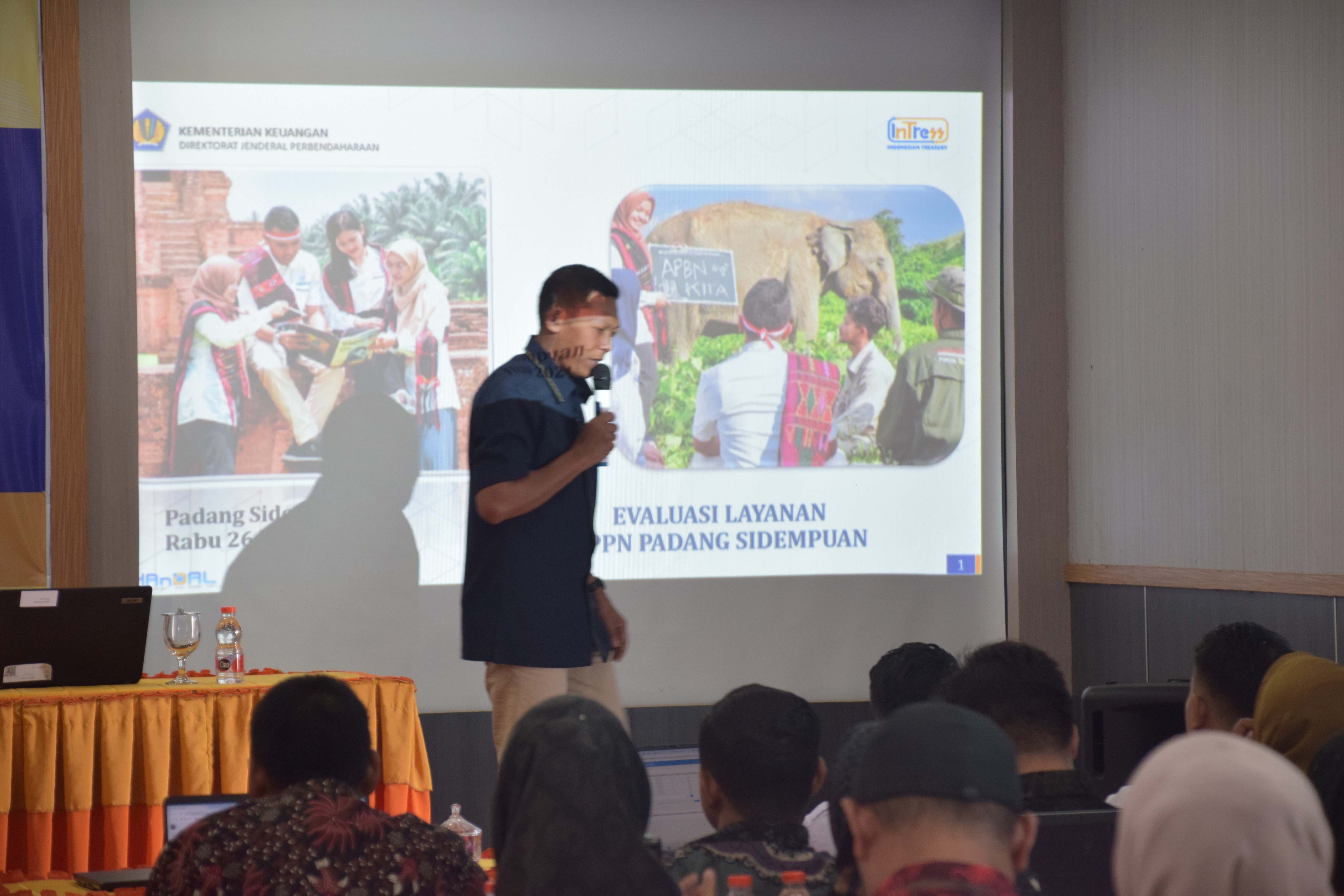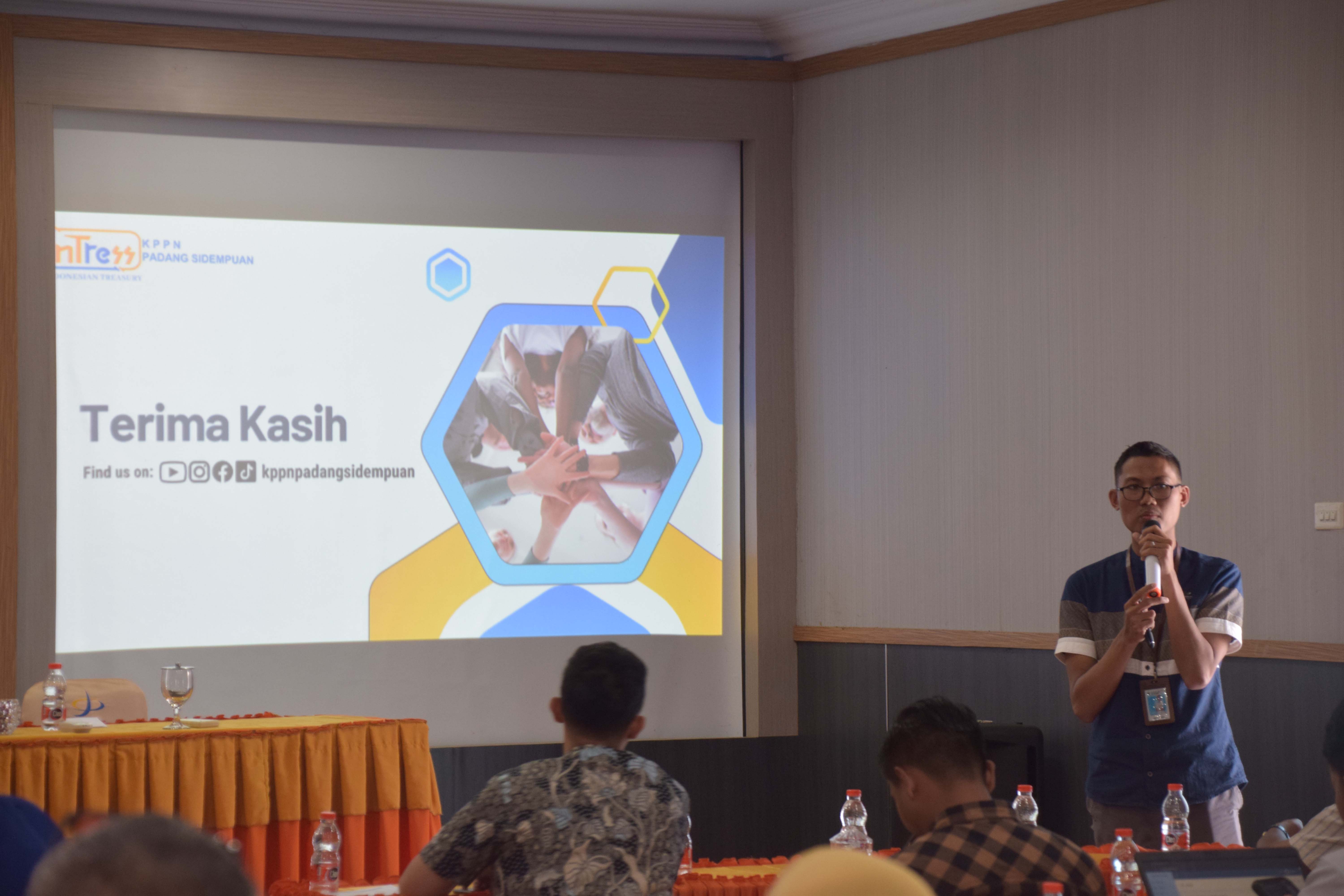 Terdapat tambahan materi yaitu terkait Evaluasi Layanan KPPN Padang Sidempuan yang disampaikan oleh Bapak Sumarsono Kepala Seksi Pencairan Dana KPPN Padang Sidempuan. Beliau memaparkan data responden survei/indeks kepuasan layanan Semester II tahun 2023, dengan jumlah responden sebanyak 80 responden, kepuasan masyarakat sebesar 4.78. Nilai yang sudah cukup baik namun masih diharapkan dapat ditingkatkan kedepannya. Terdapat beberapa kendala yang menurut analisa menjadi pengurang nilai indeks tersebut, yaitu kendala aplikasi seringkali susah diakses, maintenance aplikasi terkadang tanpa pemberitahuan sebelumnya. Namun terhadap kendala aplikasi tersebut beliau memberikan pemahaman bahwa hal tersebut juga berada diluar kendali KPPN karena aplikasi-aplikasi tersebut dikontrol oleh pusat. Di akhir penyampaian beliau juga memaparkan terkait rekap pengajuan SPM Januari – Mei 2024 yang masuk ke KPPN dan di proses menjadi SP2D. Masih banyak terjadi penolakan SPM. Oleh sebab itu, beliau mengimbau agar satuan kerja dapat lebih berhati-hati lagi sebelum menyampaikan SPM ke KPPN Padang Sidempuan.