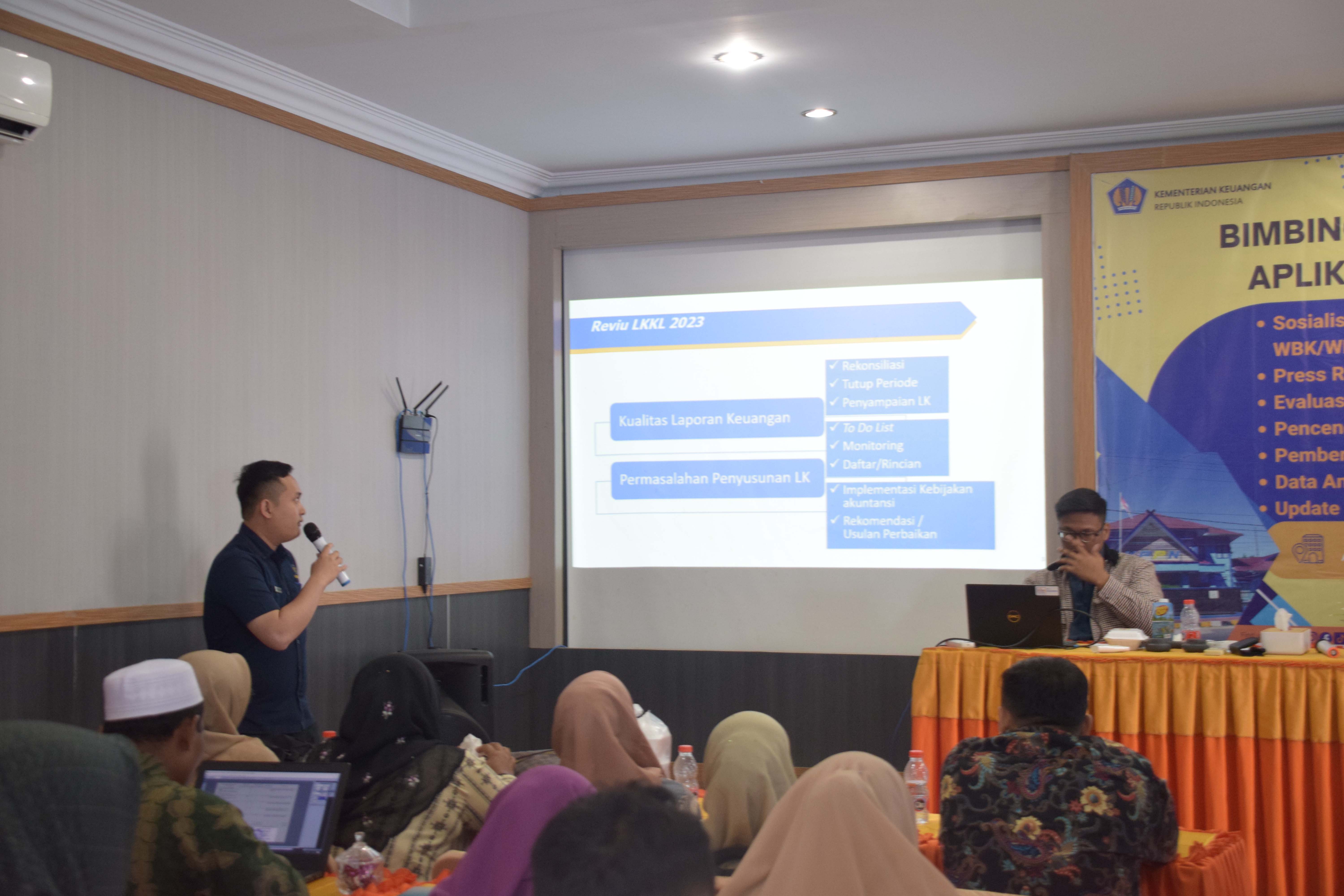 Setelah itu kegiatan dilanjutkan dengan pemaparan materi dari Narasumber ketiga Bapak Zaid Pelaksana pada Seksi Vera KPPN Padang Sidempuan. Pada kesempatan tersebut beliau menjelaskan khusus terkait modul pelaporan. Pertama beliau menyampaikan terkait proses penyusunan laporan keuangan. Kemudian dilanjutkan dengan pemaparan to do list yang sering menjadi kendala satker setiap bulannya. Terdapat 5 menu to do list yang sering muncul pada satker, yaitu: