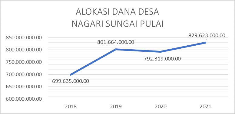 Nagari Sungai Pulai Telah mendapat alokasi penyaluran dana desa sejak tahun 2018 dengan nilai alokasi dana yang setiap tahun meningkat. Alokasi Dana Desa yang diterima Nagari Sungai Pulai pada Tahun Anggaran 2021 sebesar Rp. 829.623.000.