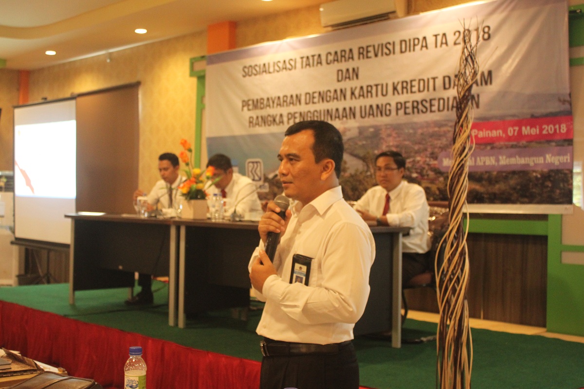 Bertempat di Hotel Hana Syariah, pada tanggal 07 Mei 2018, mulai pukul 08.00 s.d. 12.30 WIB, diselenggarakan kegiatan berupa Sosialisasi Tata Cara Revisi DIPA TA 2018 dan Pembayaran dengan Kartu Kredit dalam Rangka Penggunaan Uang Persediaan. Peserta sosialisasi berjumlah 90 peserta yang merupakan perwakilan masing-masing Satker. Masing-masing Satker mengirimkan 2 orang perwakilan (KPA dan Bendahara Pengeluaran).