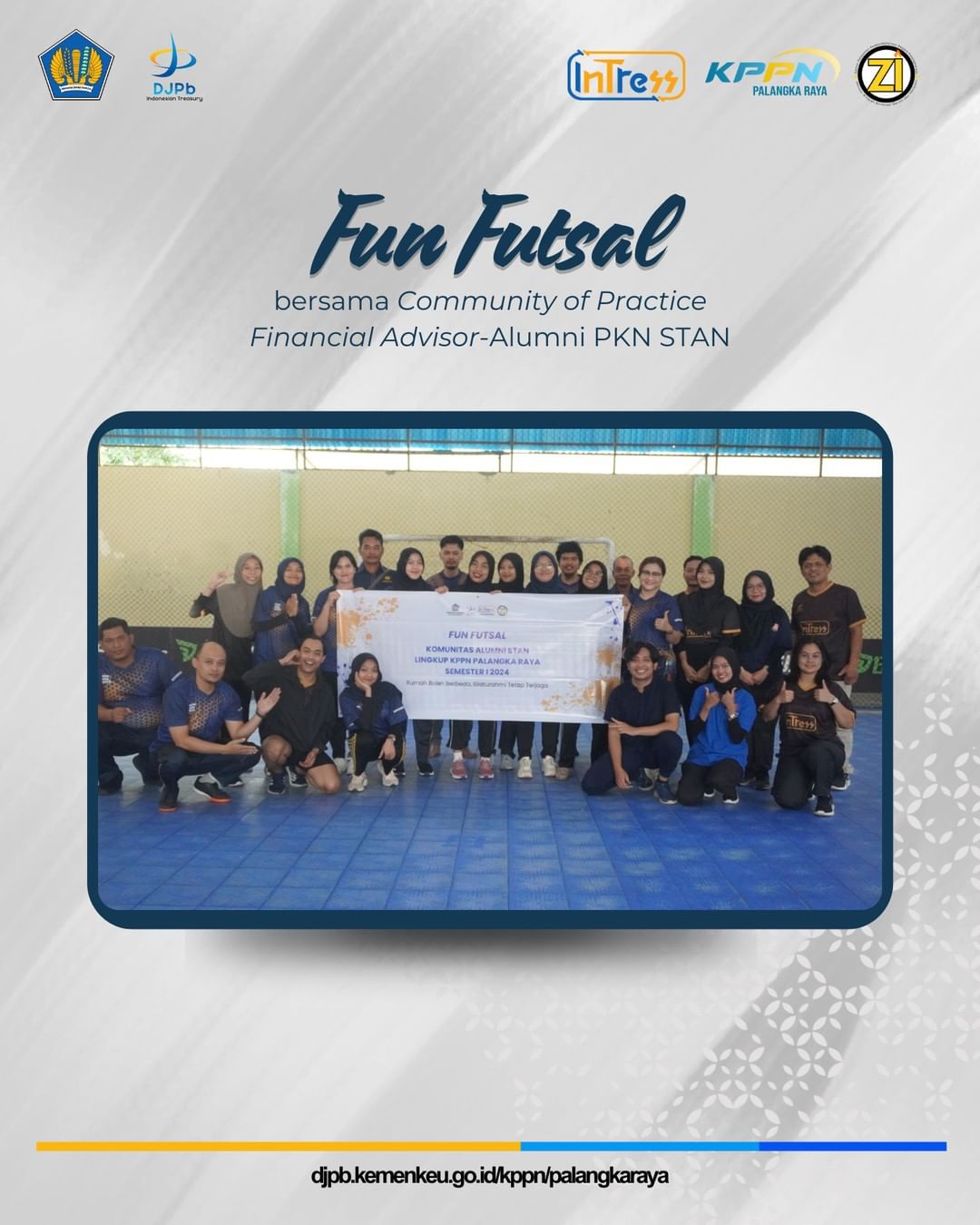 Pada Rabu, 26 Juni 2024, KPPN Palangkaraya menyelenggarakan kegiatan Fun Futsal yang berlangsung di Winning Futsal. Acara ini diikuti oleh seluruh pegawai dan pejabat KPPN Palangkaraya, serta melibatkan Community of Practice Financial Advisor-Alumni PKN STAN (CoPFA-Alumni PKN STAN).